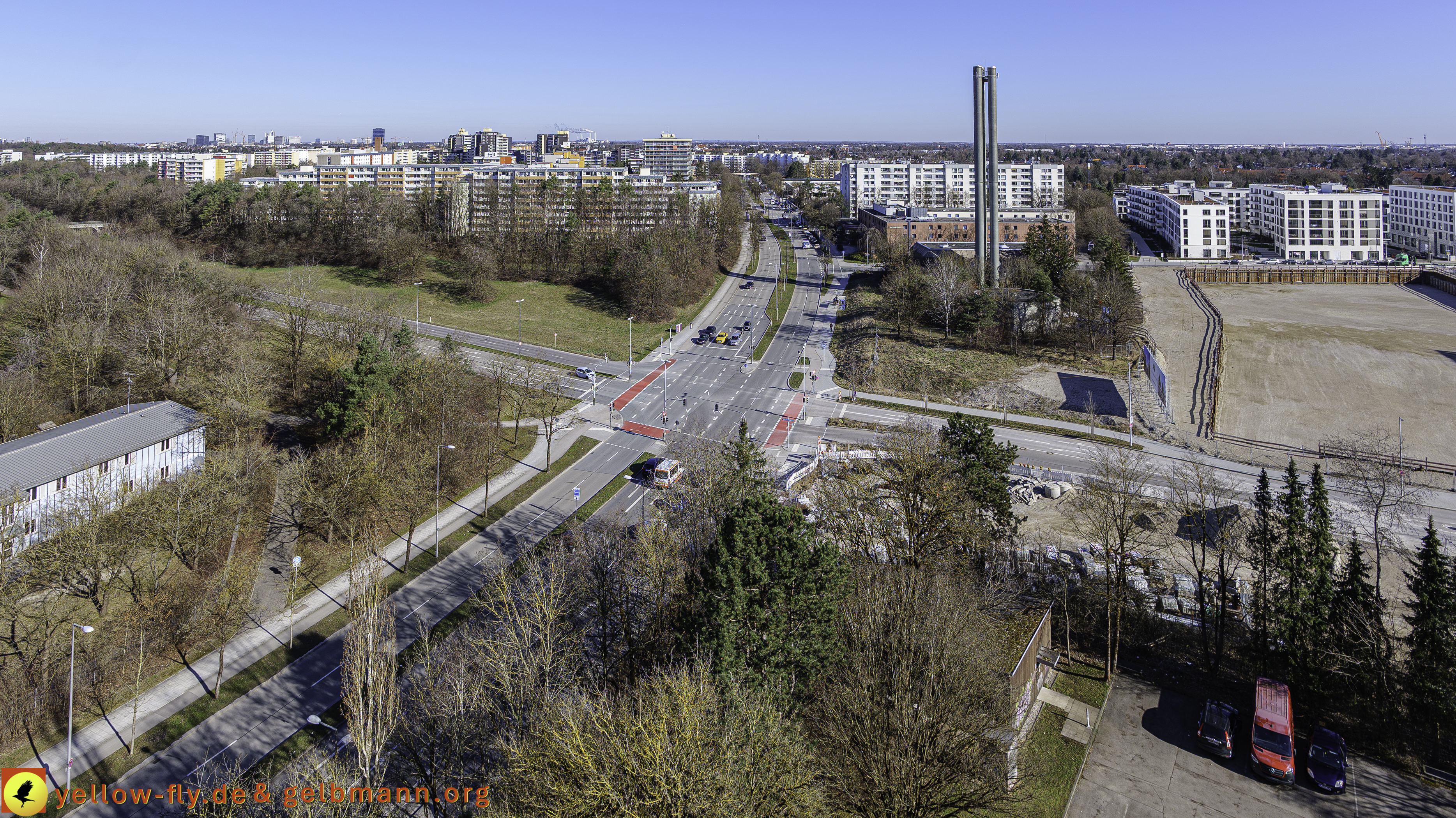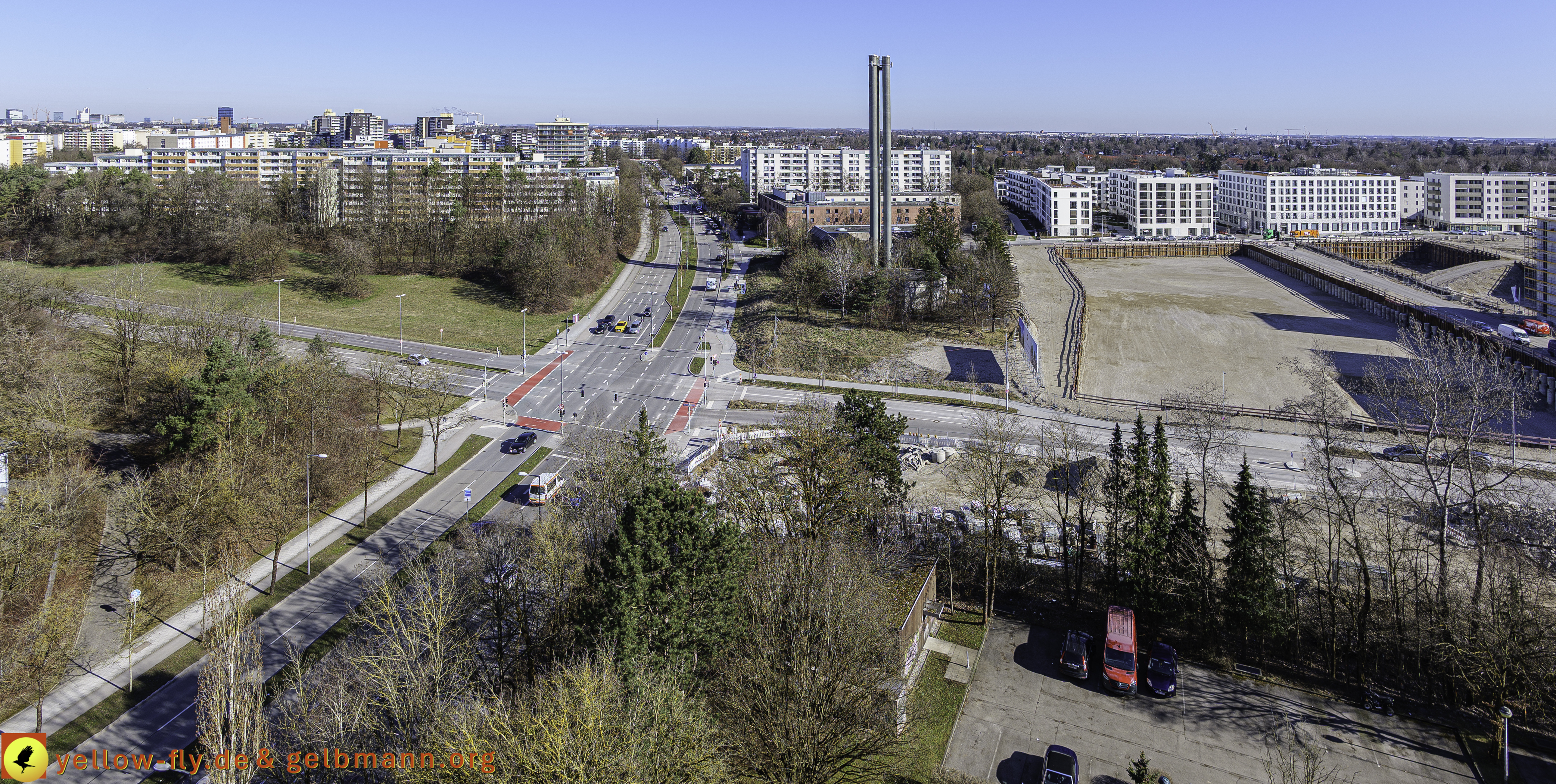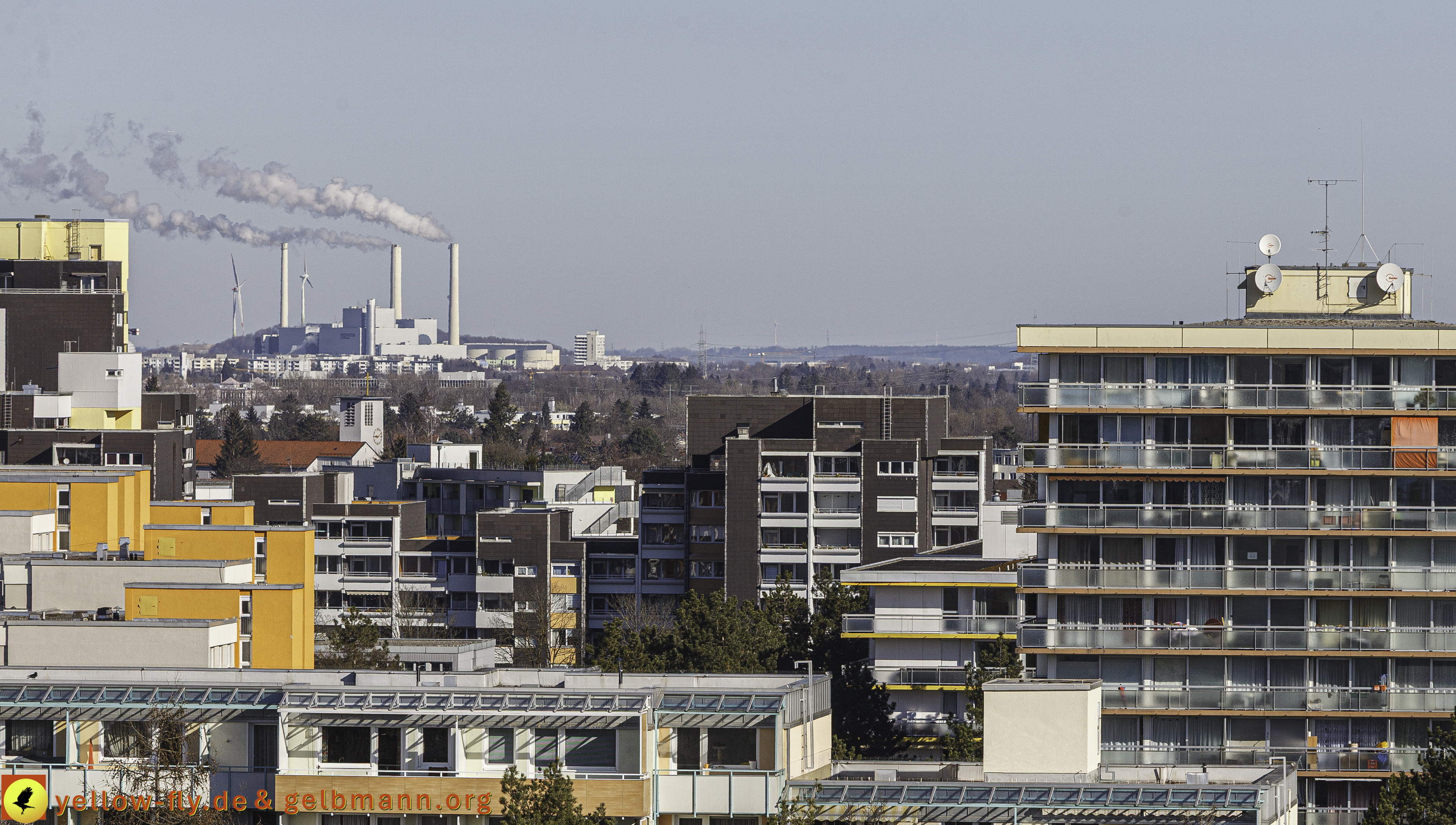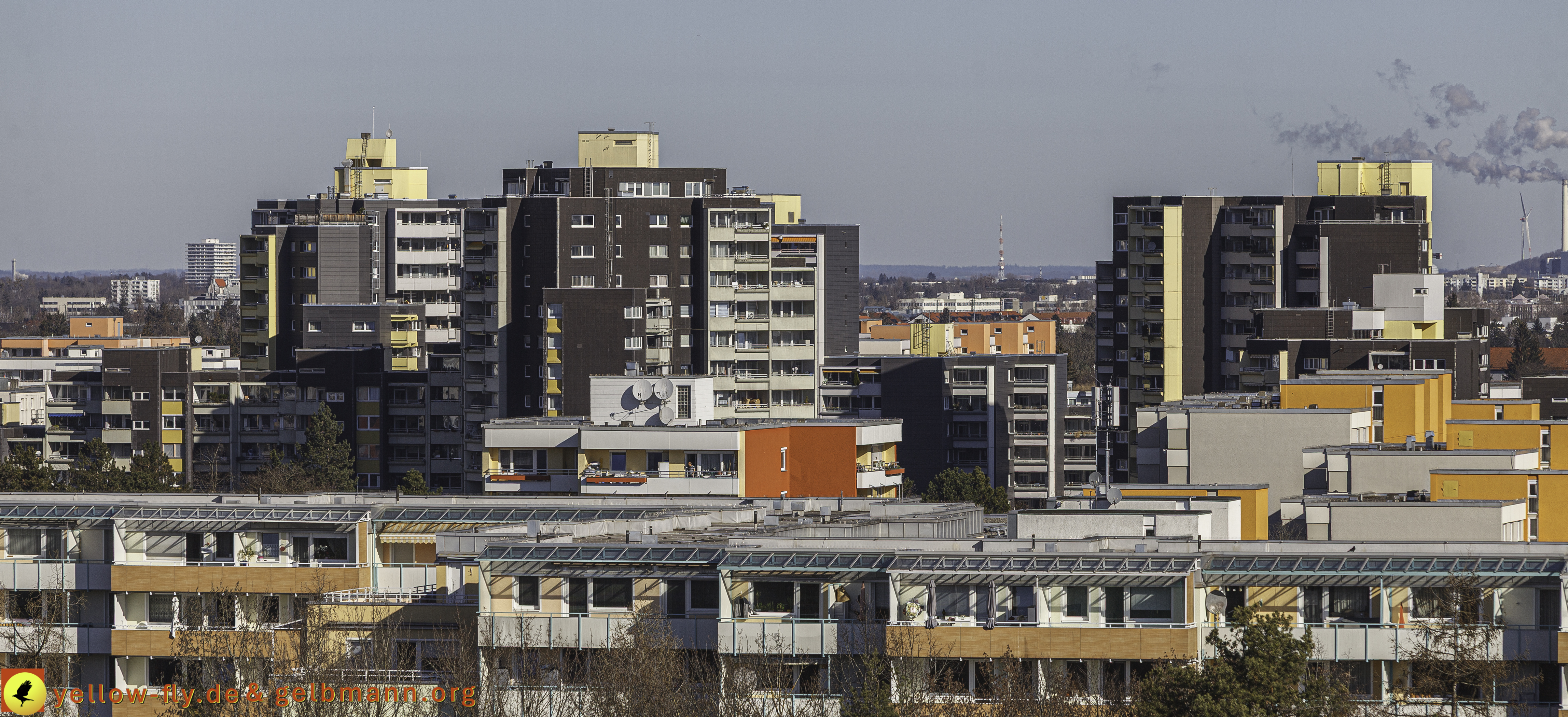 Der Blick in Richtung meiner Burg zeigt, wir haben noch Winter. Das Kraftwerk Nord zeigt seine Rauchschwaden inForm von Wasserdampf. Das Marx-Zentrum und die Nachbarwohnanlage am Karl-Marx-Ring 52-62, mit einem "echten Hochhaus", liegen friedlich in der winterlichen Morgensonne in Neuperlach. #DEMOS, #Alexisqaurtier, #Neuperlach, #Wohnungen, #Wohnquartier, #Neubau, #Luftbilder, #Copterfotos, #Judas