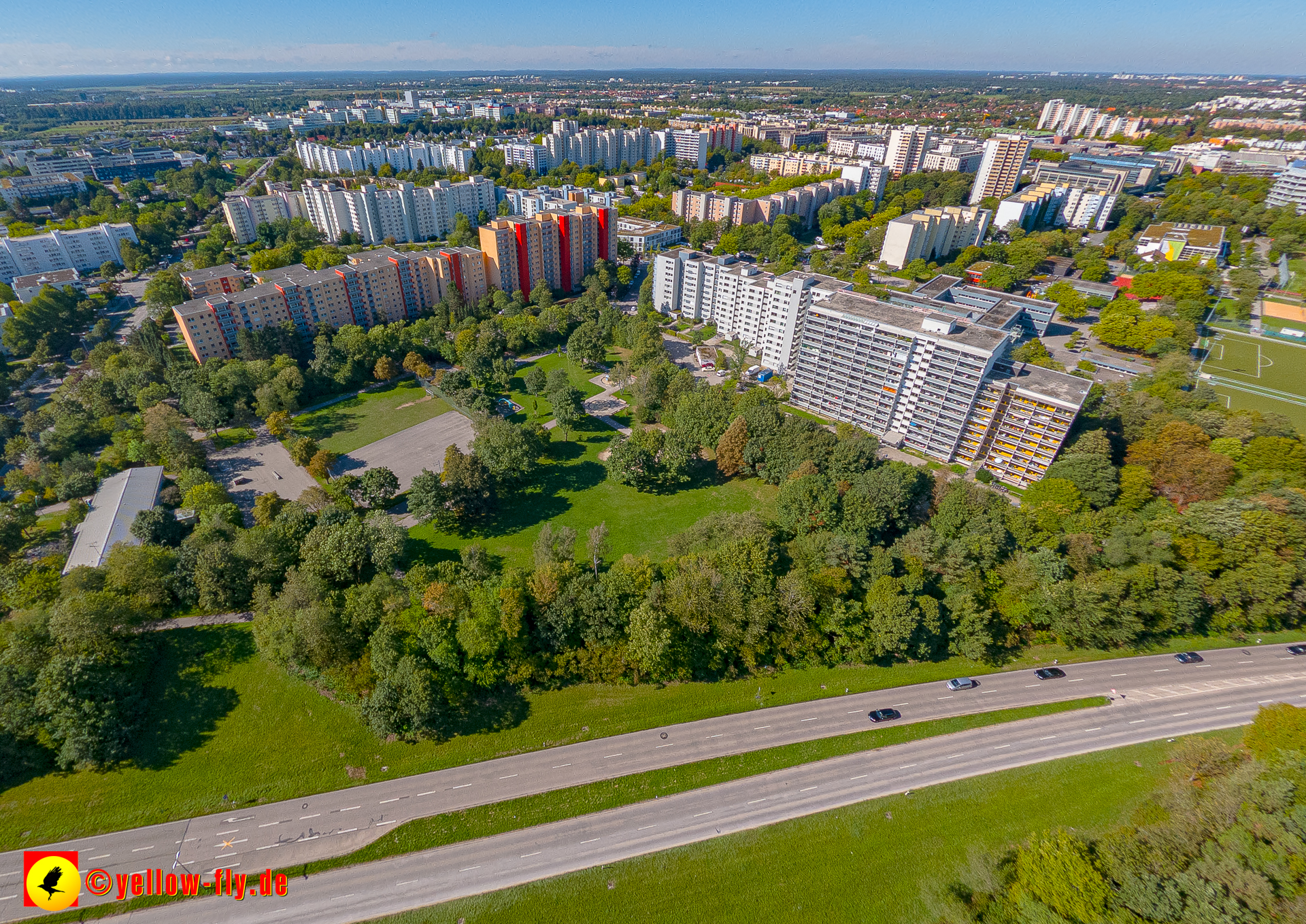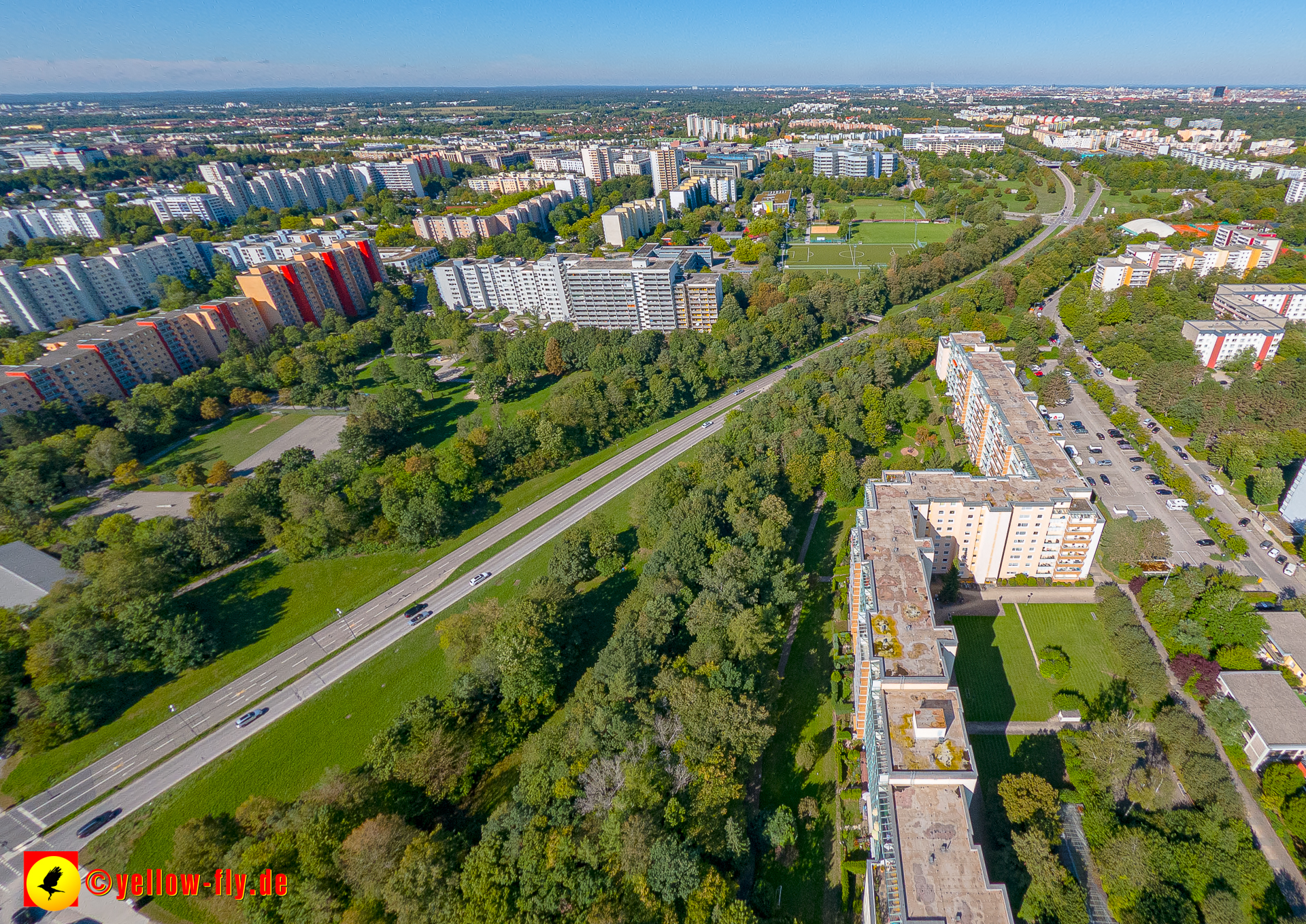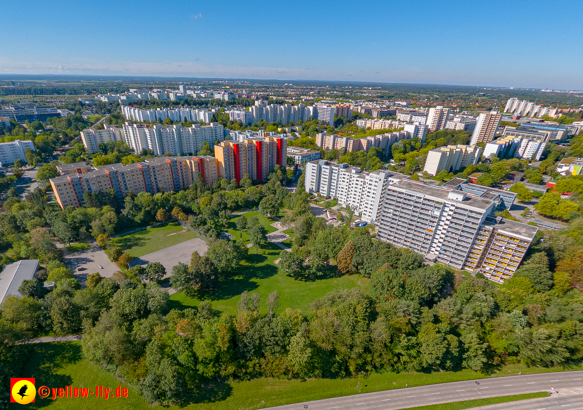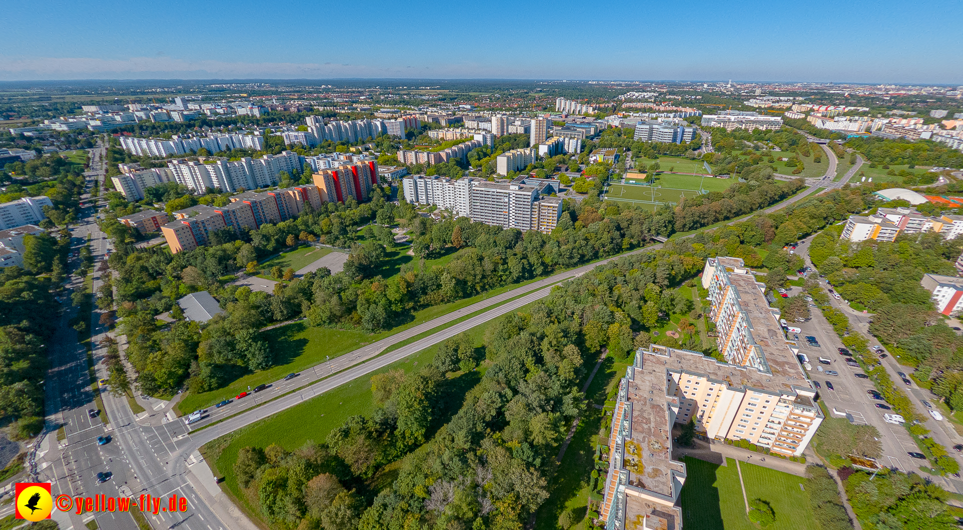 Von der Kreuzung Ständlerstraße und Karl-Marx-Ring aus, hat man eine nguten Blick über das östliche Neuperlach.