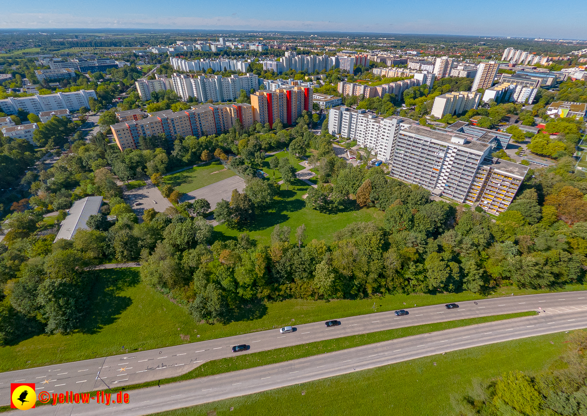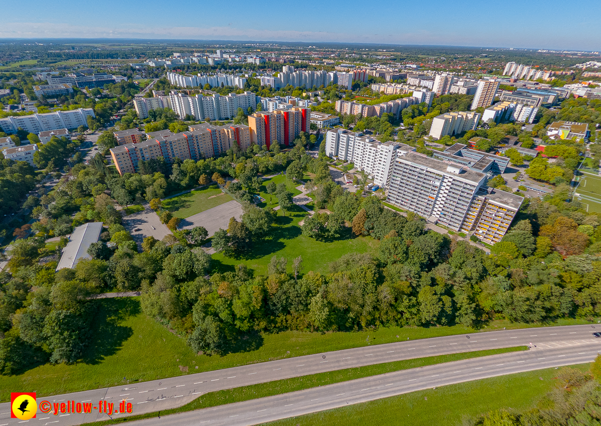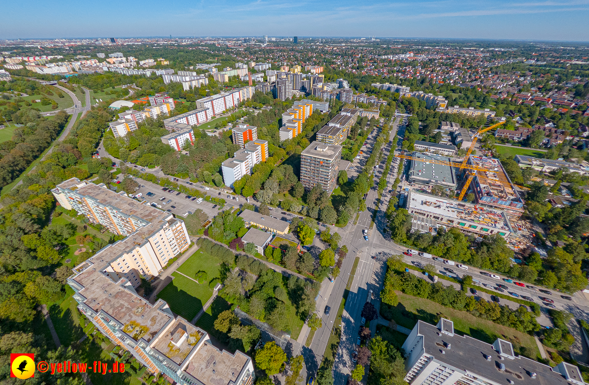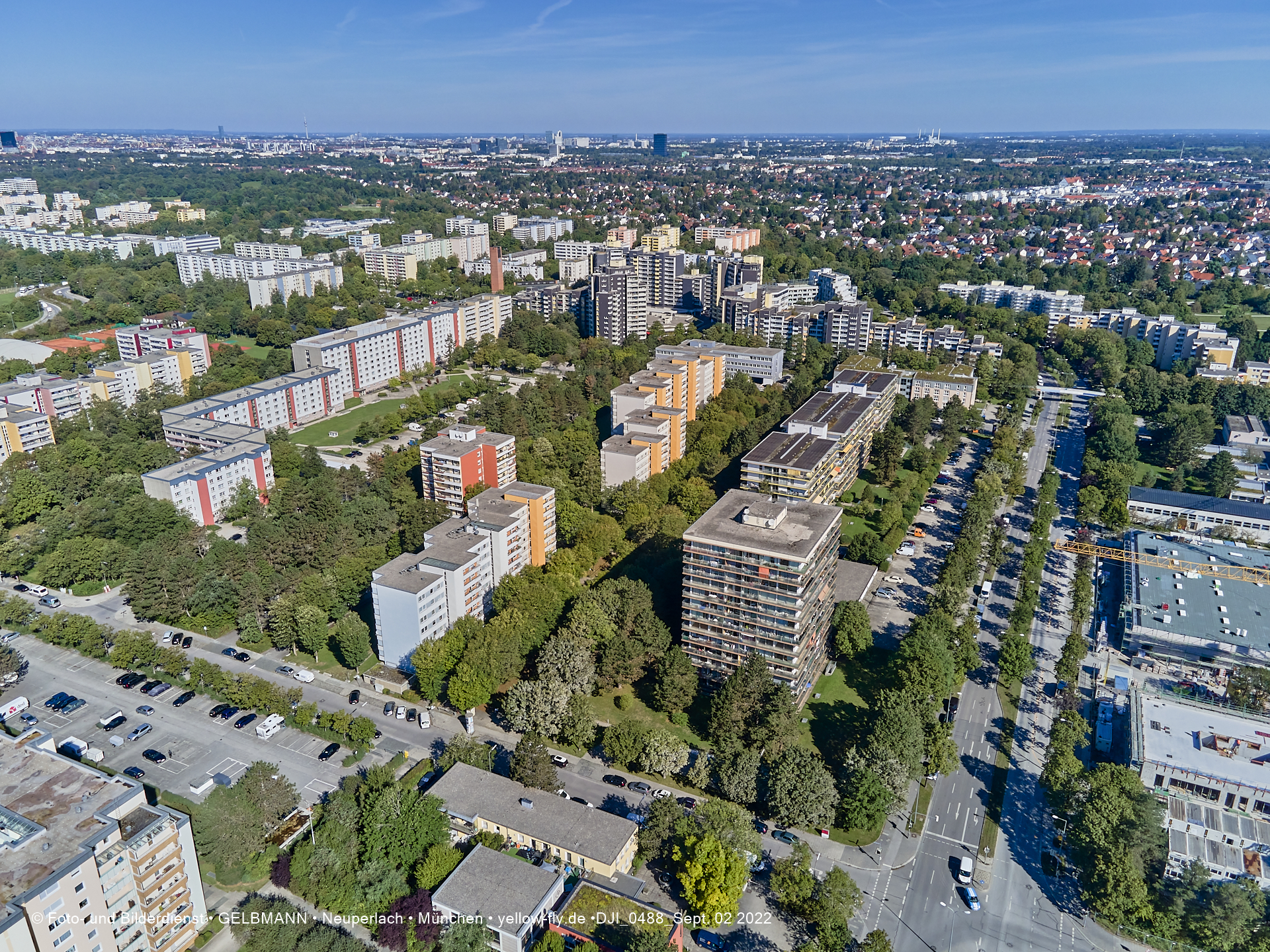 Von der Kreuzung Ständlerstraße und Karl-Marx-Ring aus, hat man eine nguten Blick über das östliche Neuperlach.