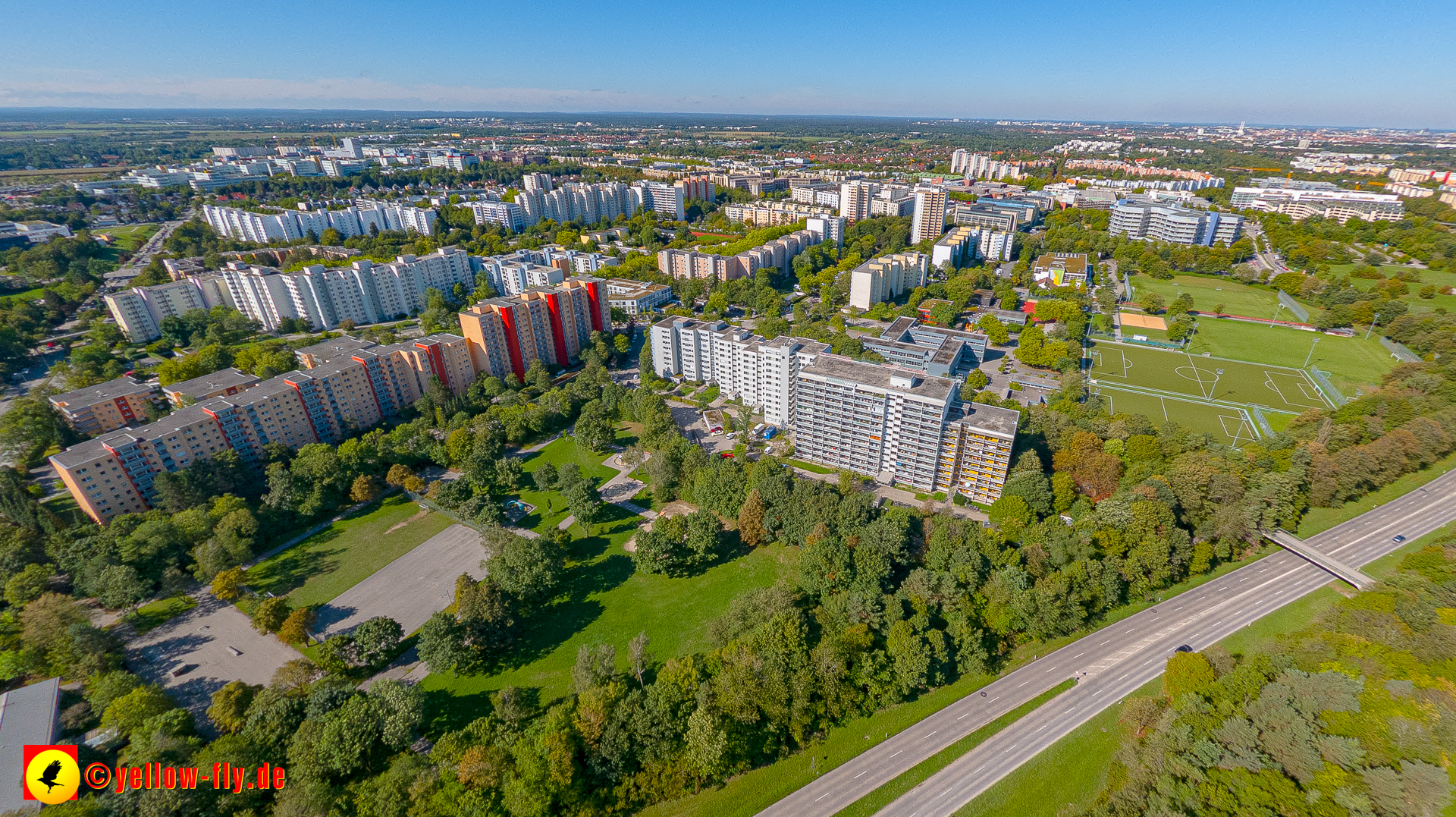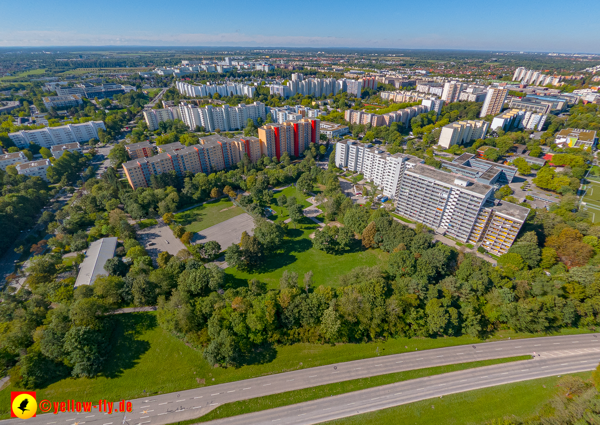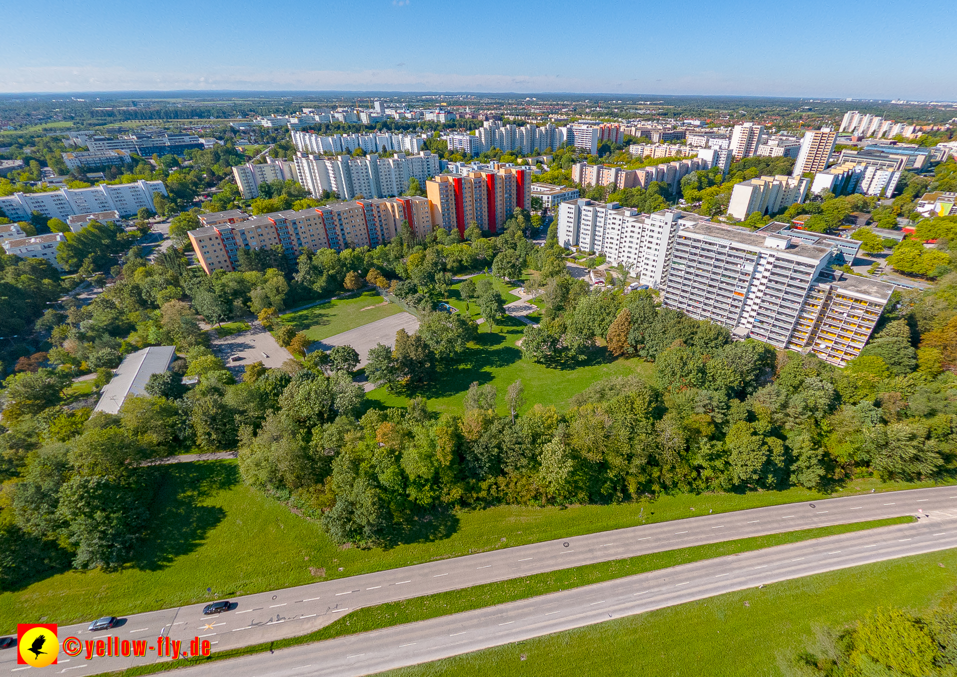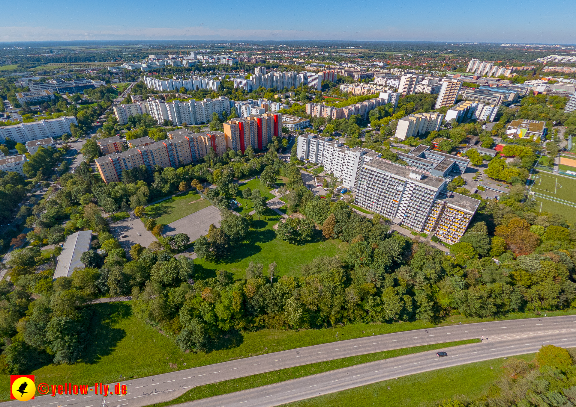 Von der Kreuzung Ständlerstraße und Karl-Marx-Ring aus, hat man eine nguten Blick über das östliche Neuperlach.