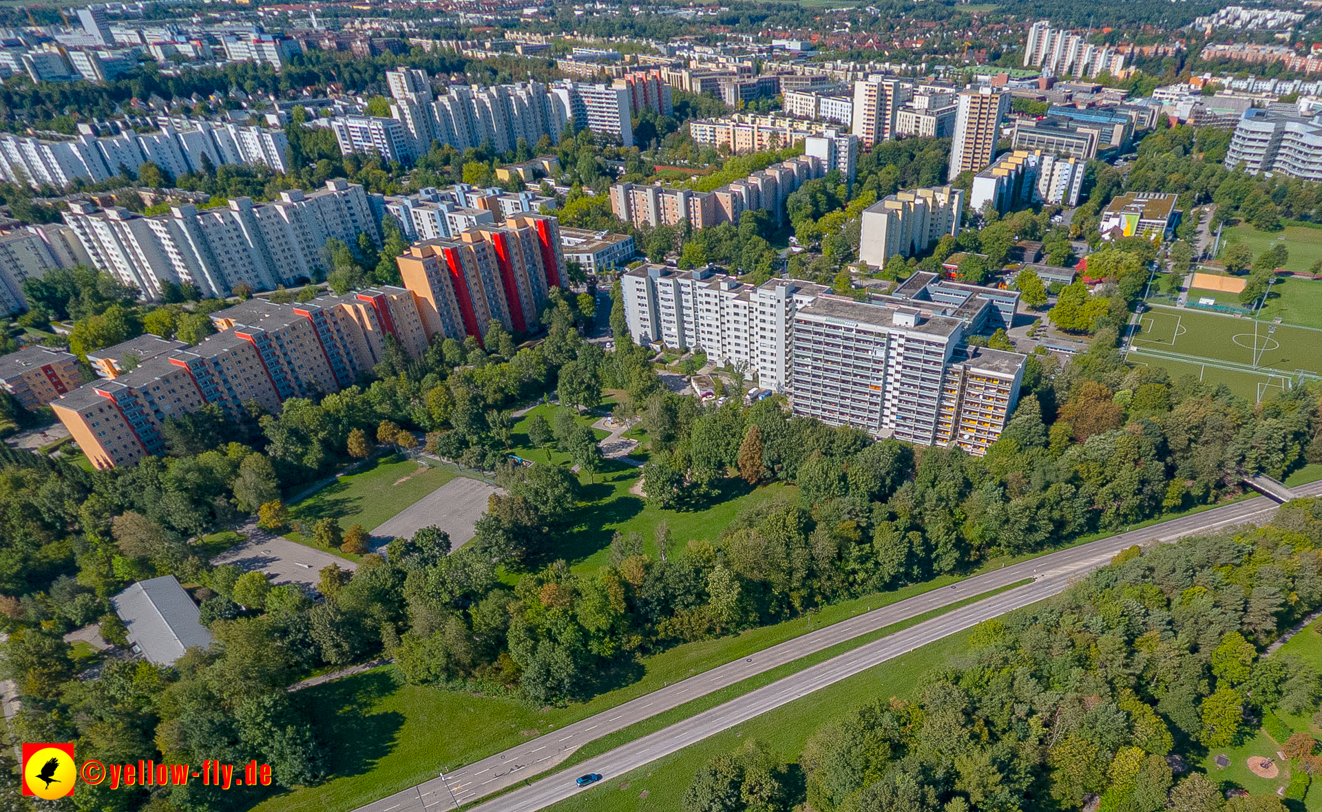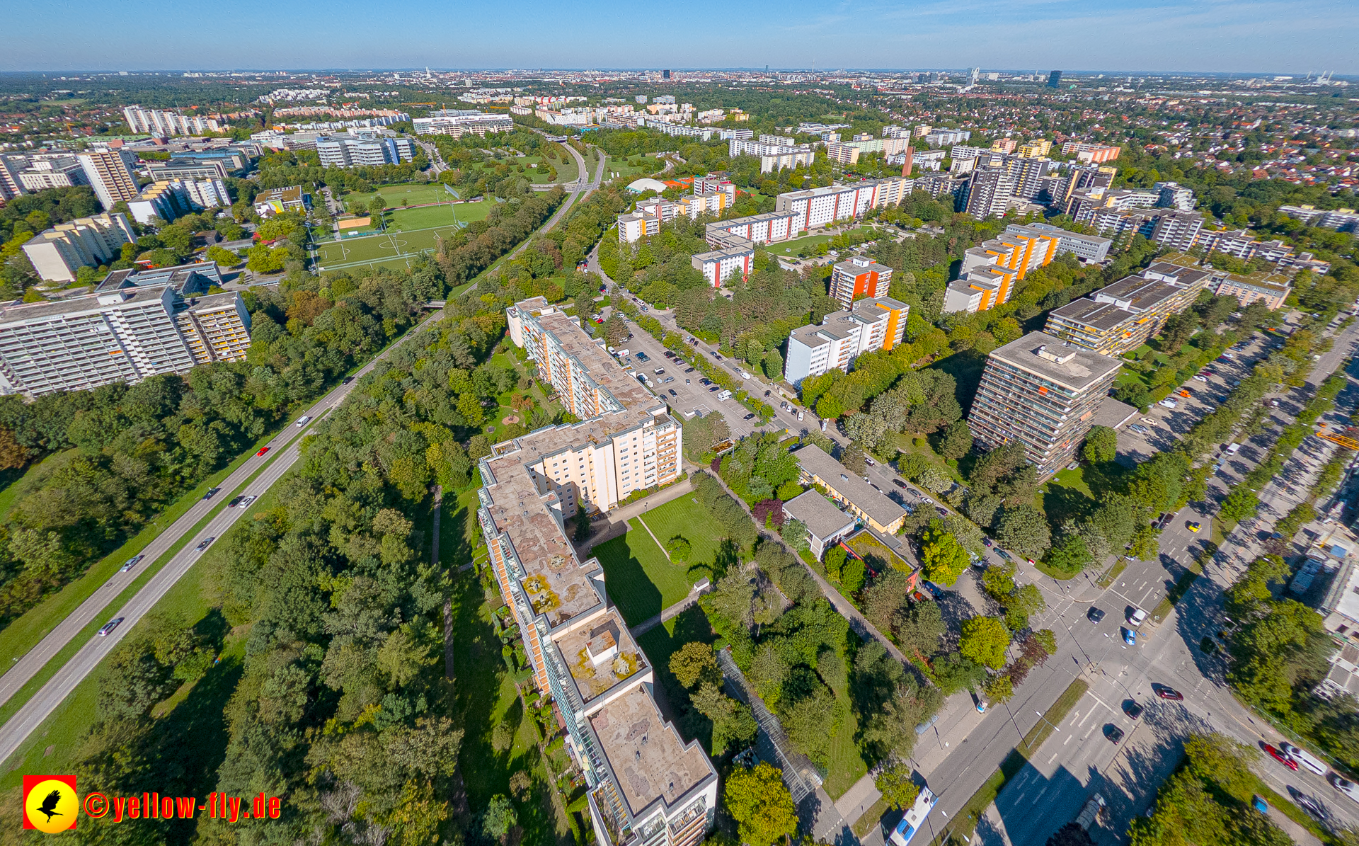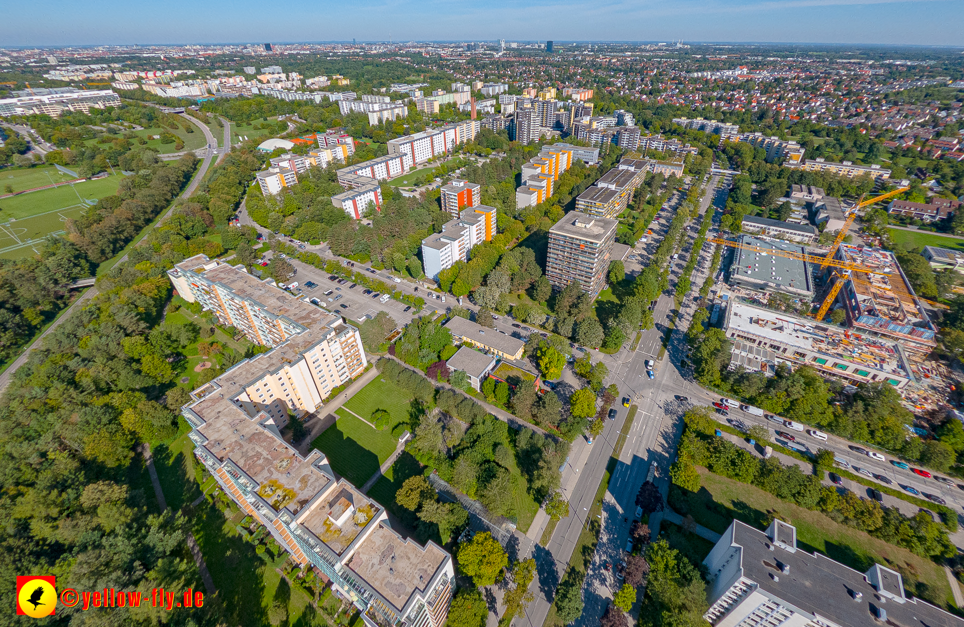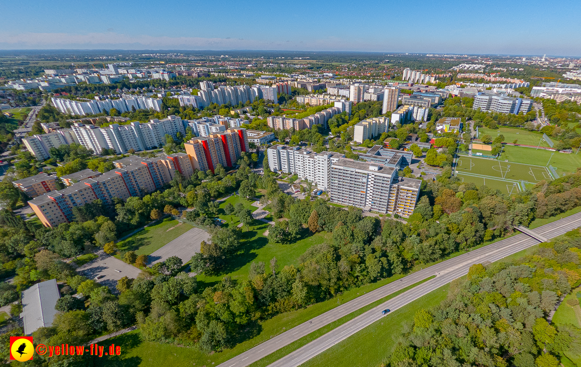 Von der Kreuzung Ständlerstraße und Karl-Marx-Ring aus, hat man eine nguten Blick über das östliche Neuperlach.