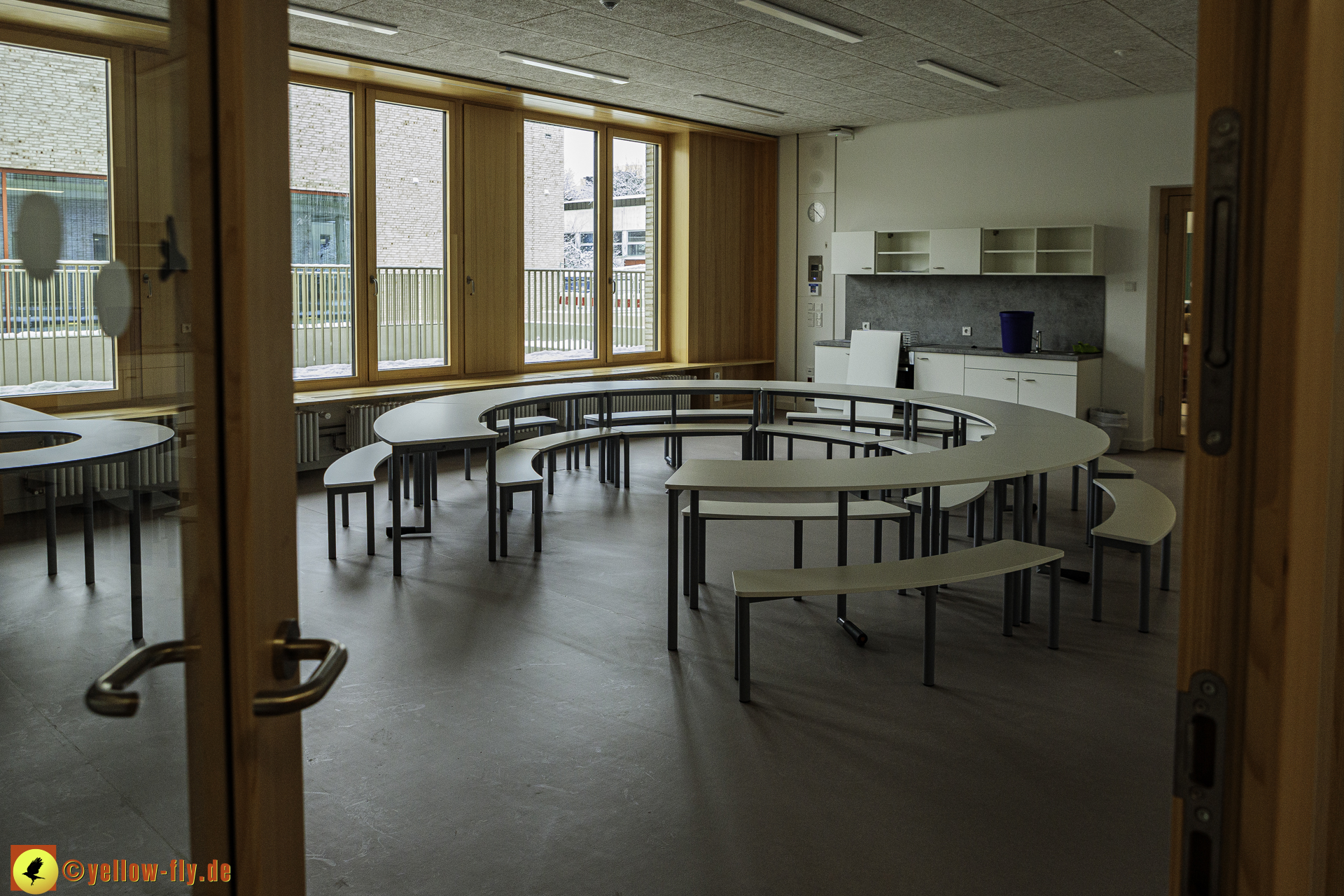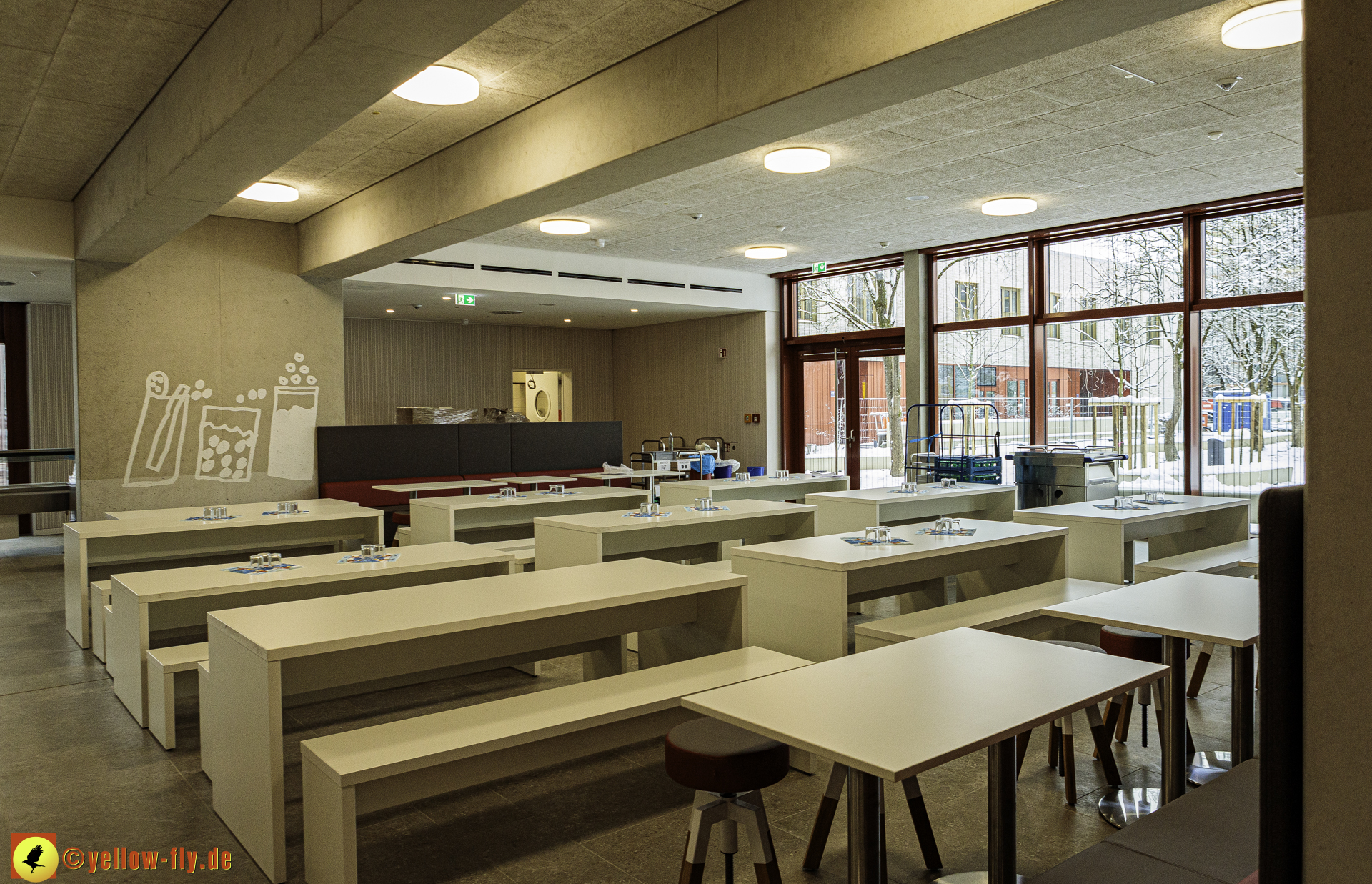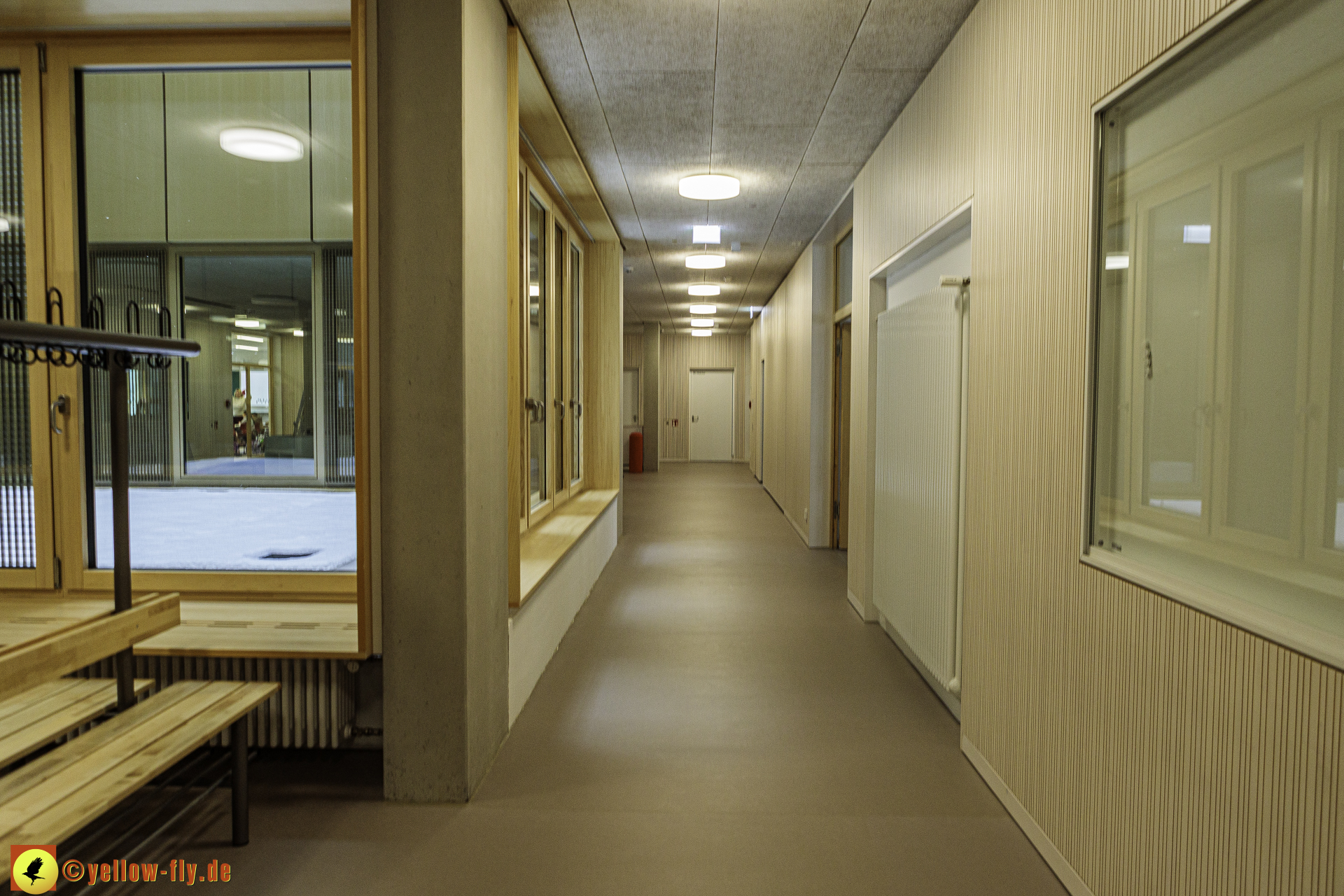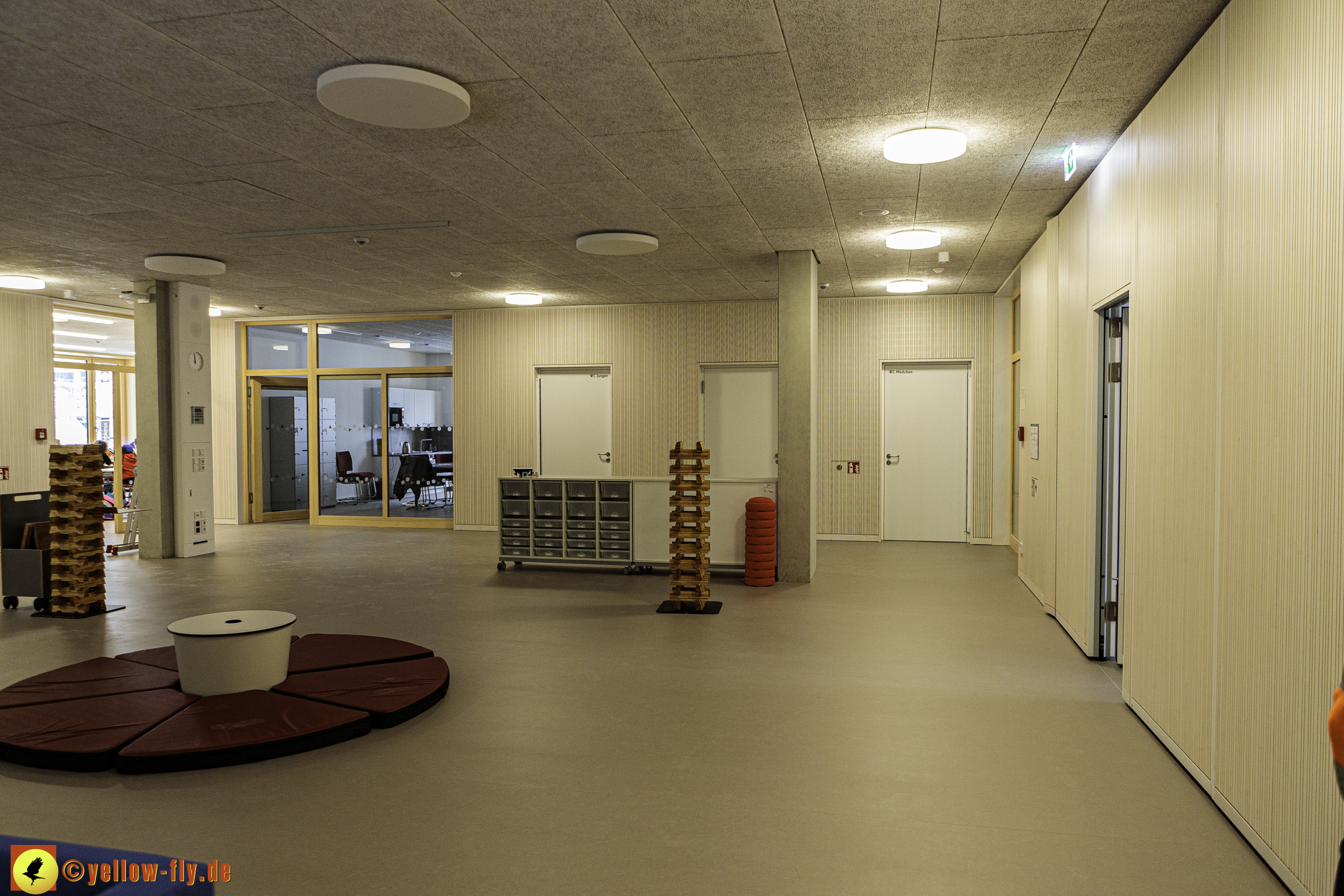 Heute am 08.01.2024 war der 1. Schultag in dem neuen Schulgebäude am Karl-Marx-Ring. Mein langjähriger Bekannter und freundlicher Mitarbeiter der Bauaufsicht von Implenia machte es möglich, eine kleine Besichtigung des neuen Schulgebäudes zu absolvieren. Da schon der Unterricht stattfand, mussten wir uns sehr ruhig verhalten.