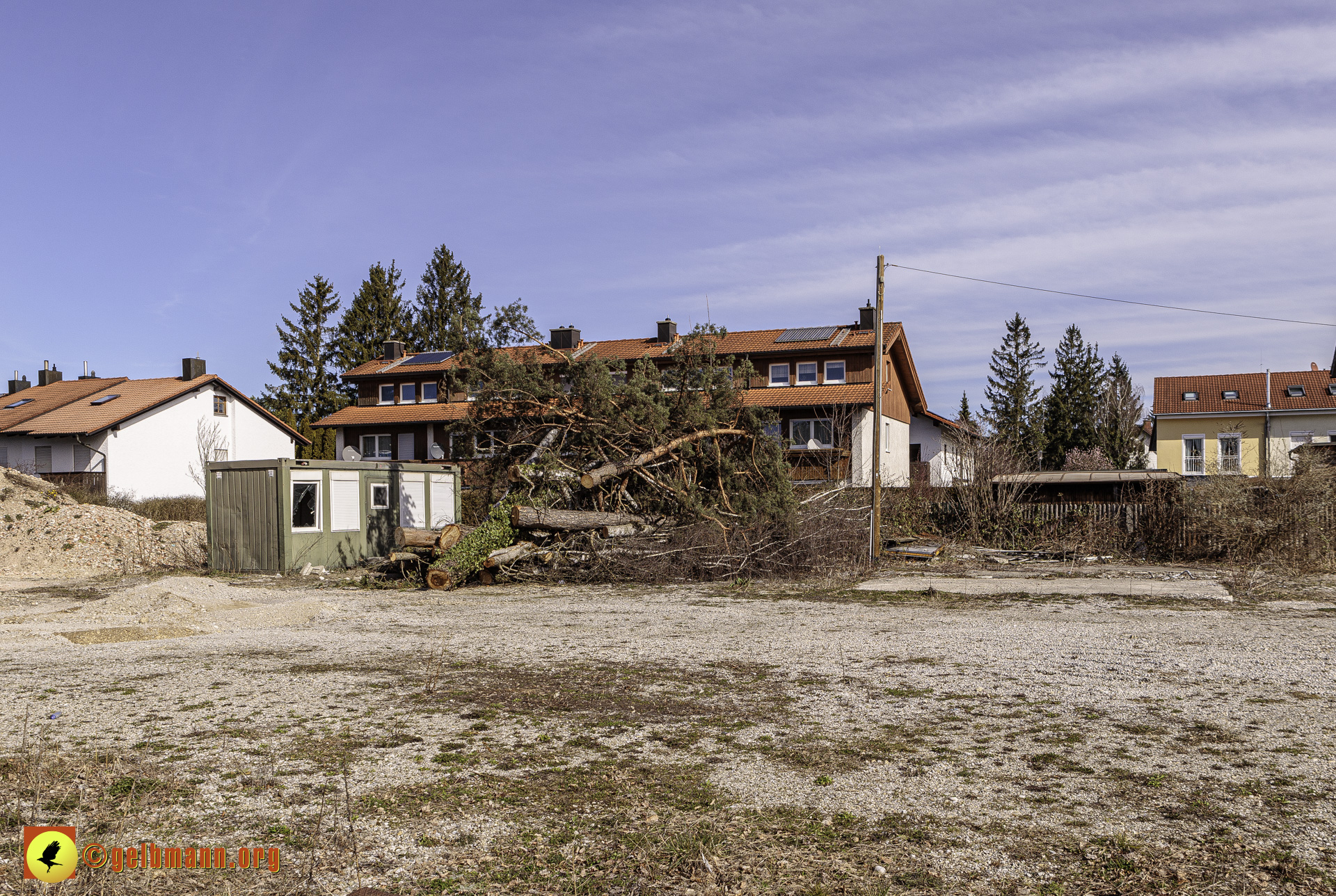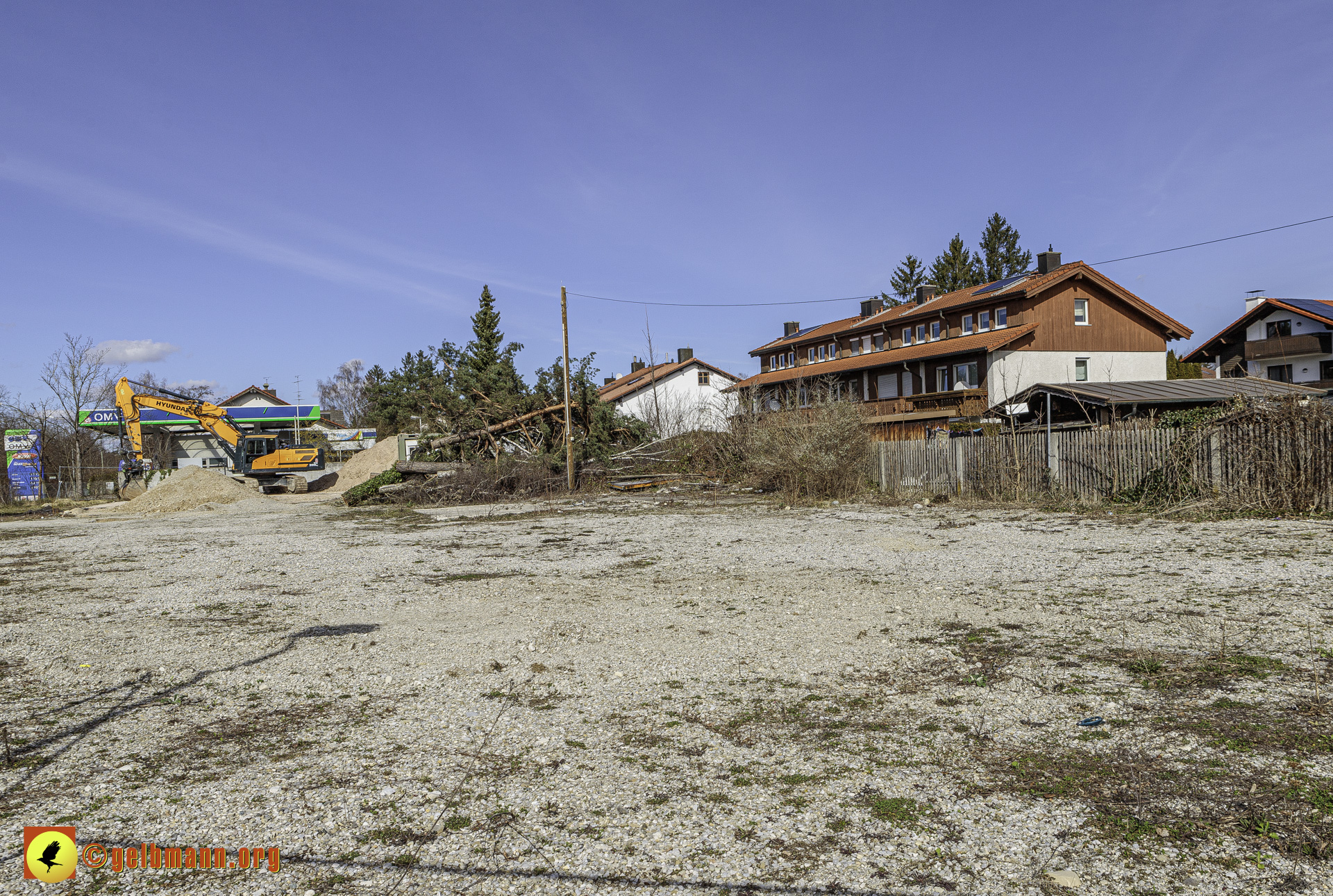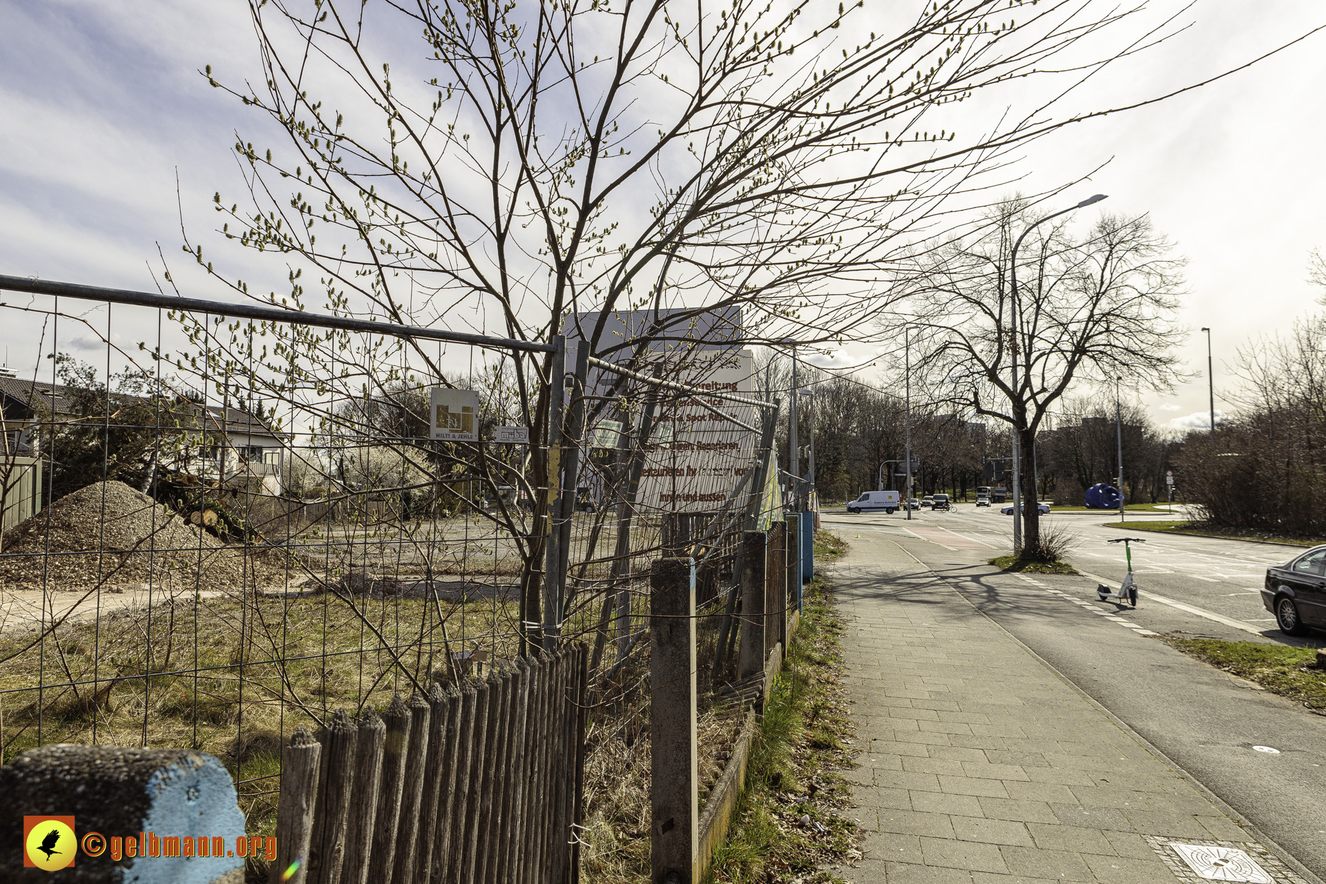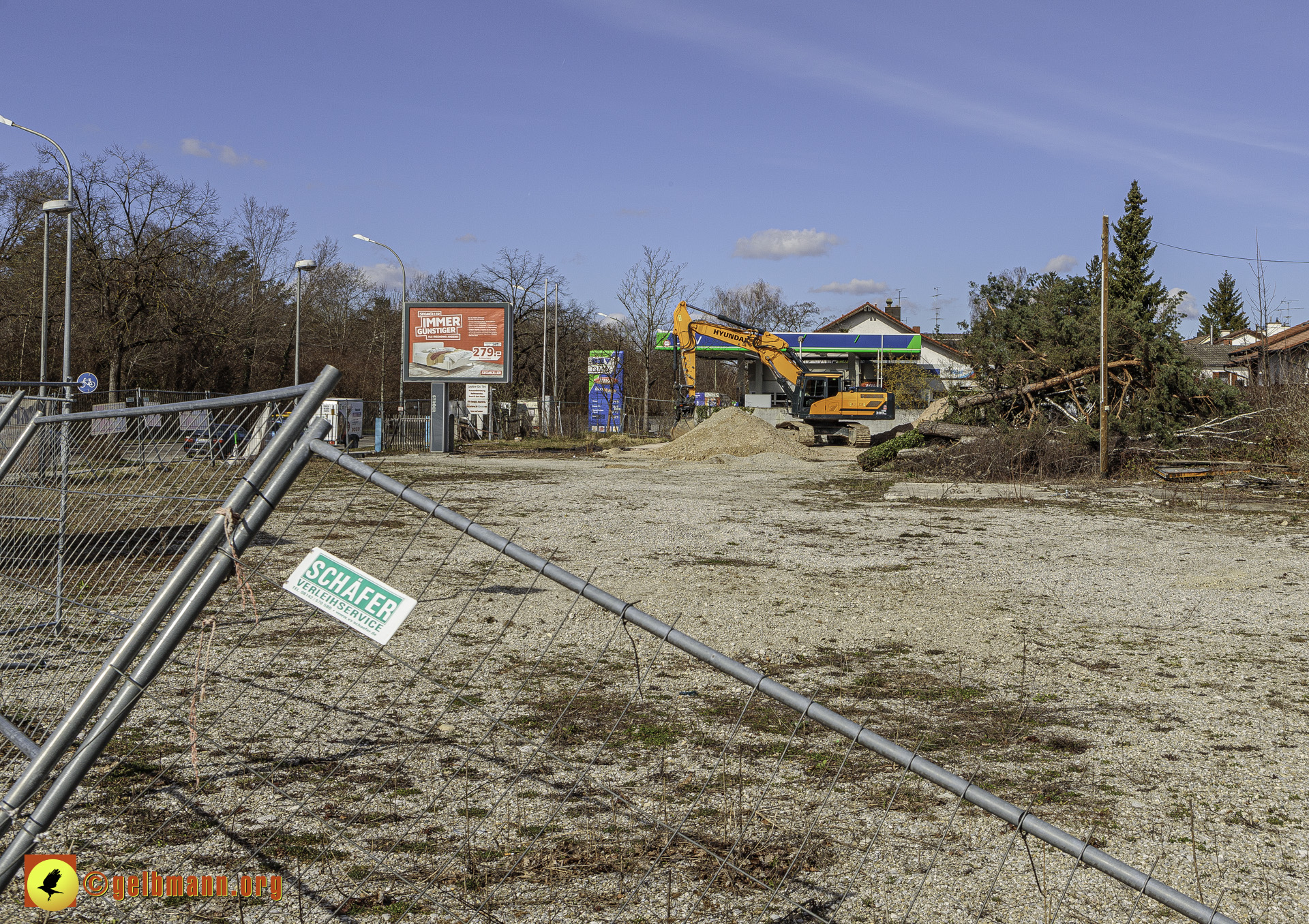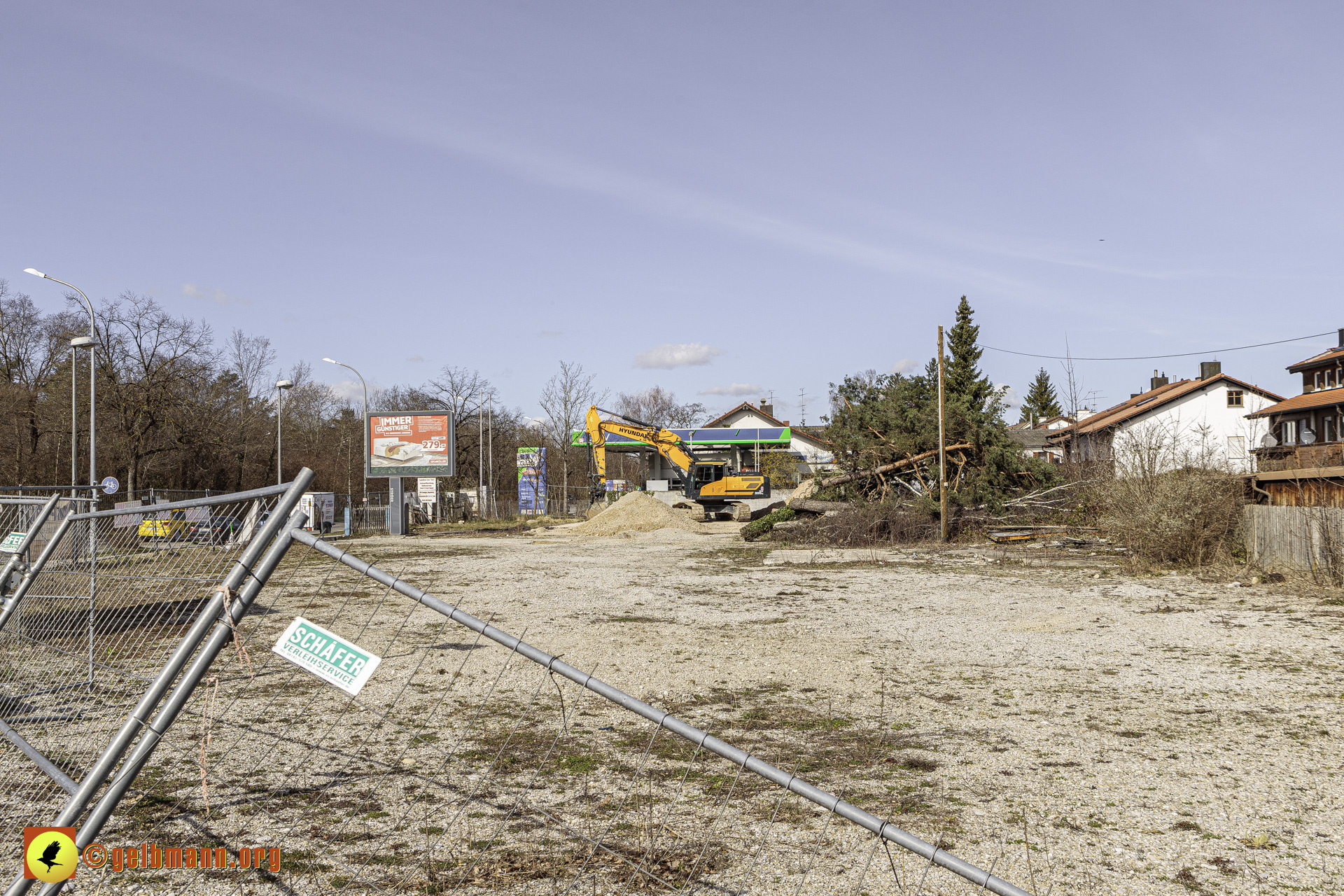 11.03.2024 - Soeben haben die Bauarbeiten auf der neuen Baustelle an der Heinrich-Wieland-Straße, Ecke Cornithstraße begonnen. Gestrüpp und ein kleiner Baum wurden entfernt. Nun kann es in die Tiefe gehen.