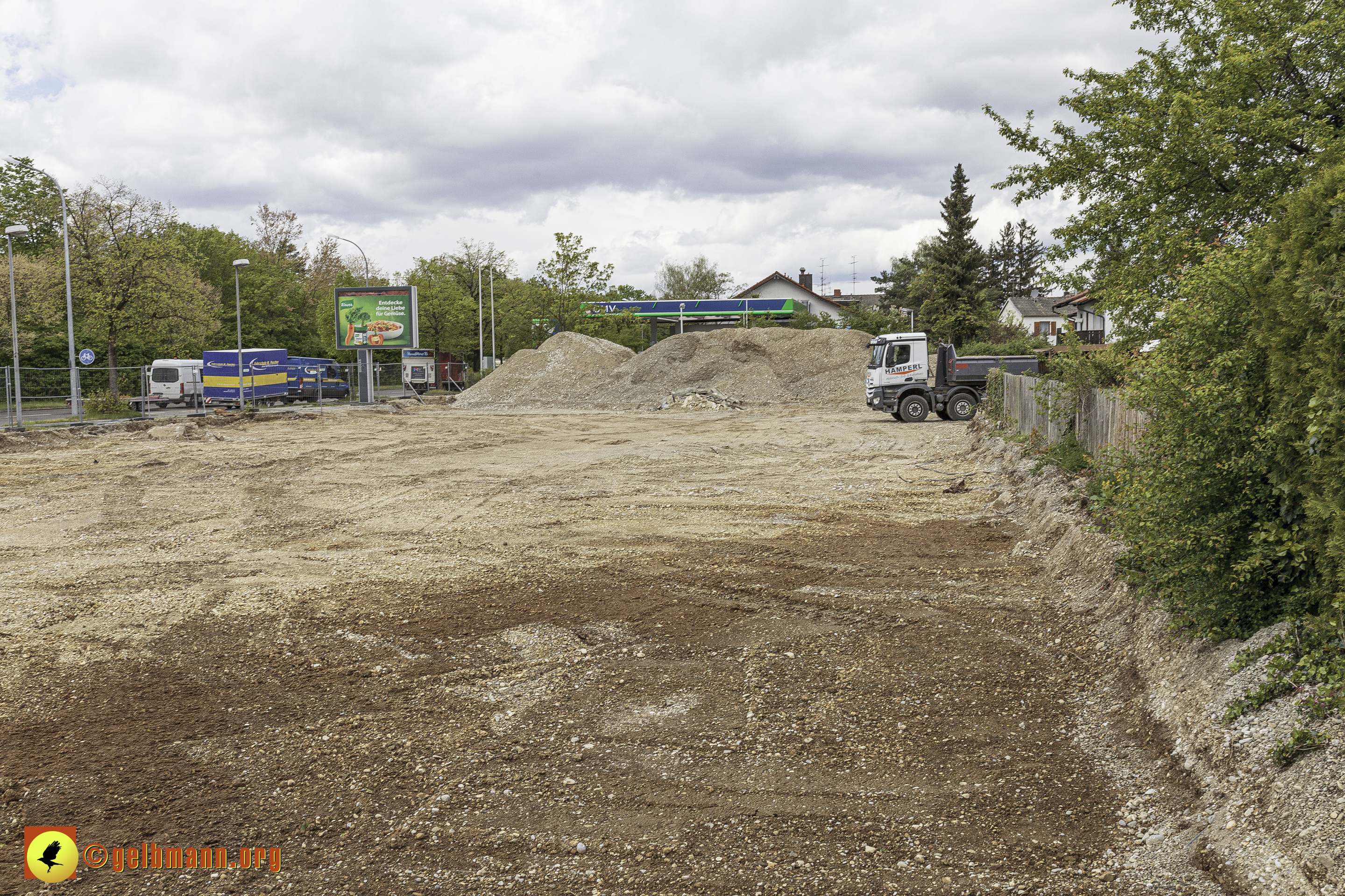 25.04.2024 - Soeben haben die Bauarbeiten auf der neuen Baustelle an der Heinrich-Wieland-Straße, Ecke Cornithstraße begonnen. Gestrüpp und ein kleiner Baum wurden entfernt. Nun kann es in die Tiefe gehen.