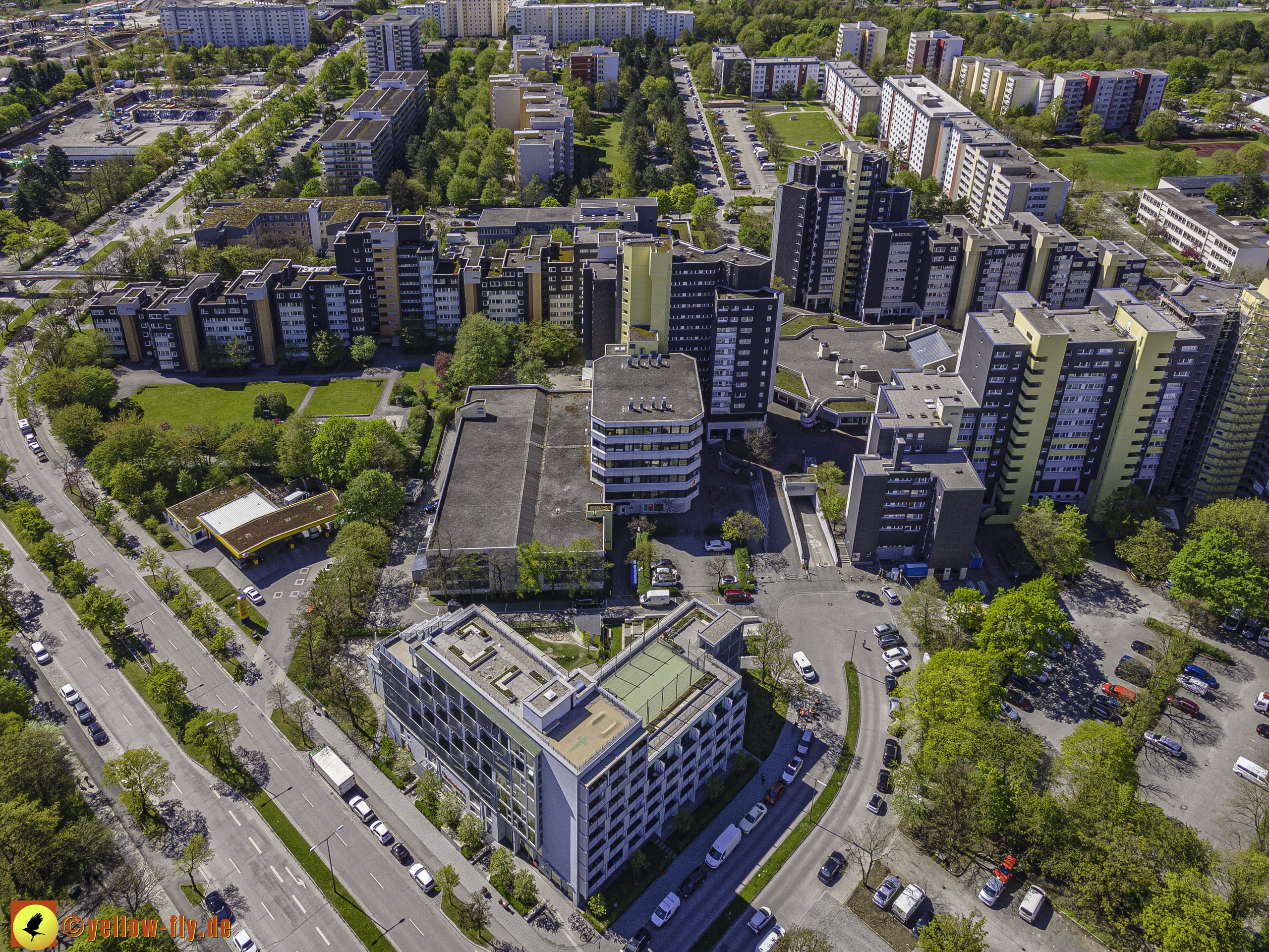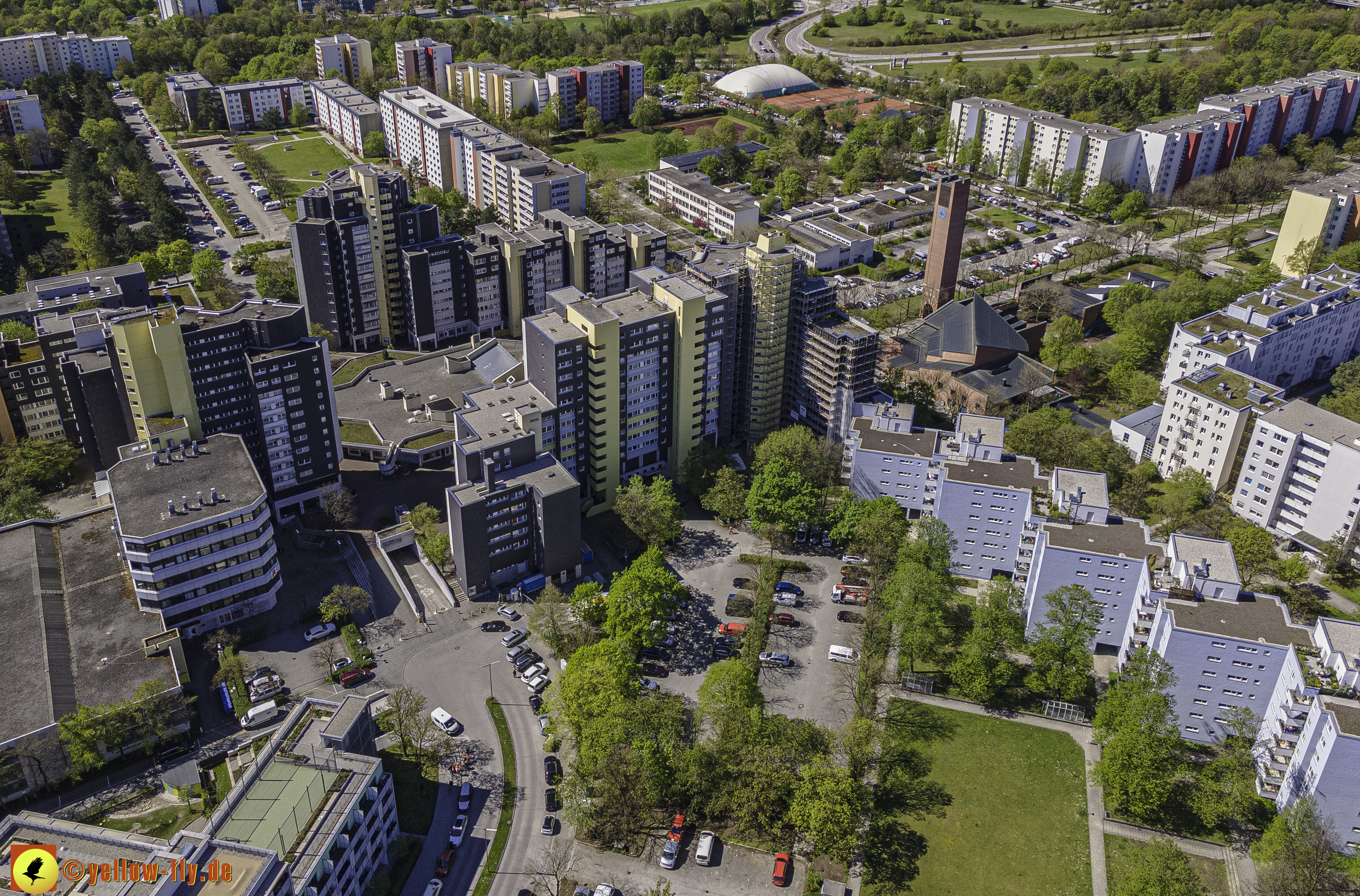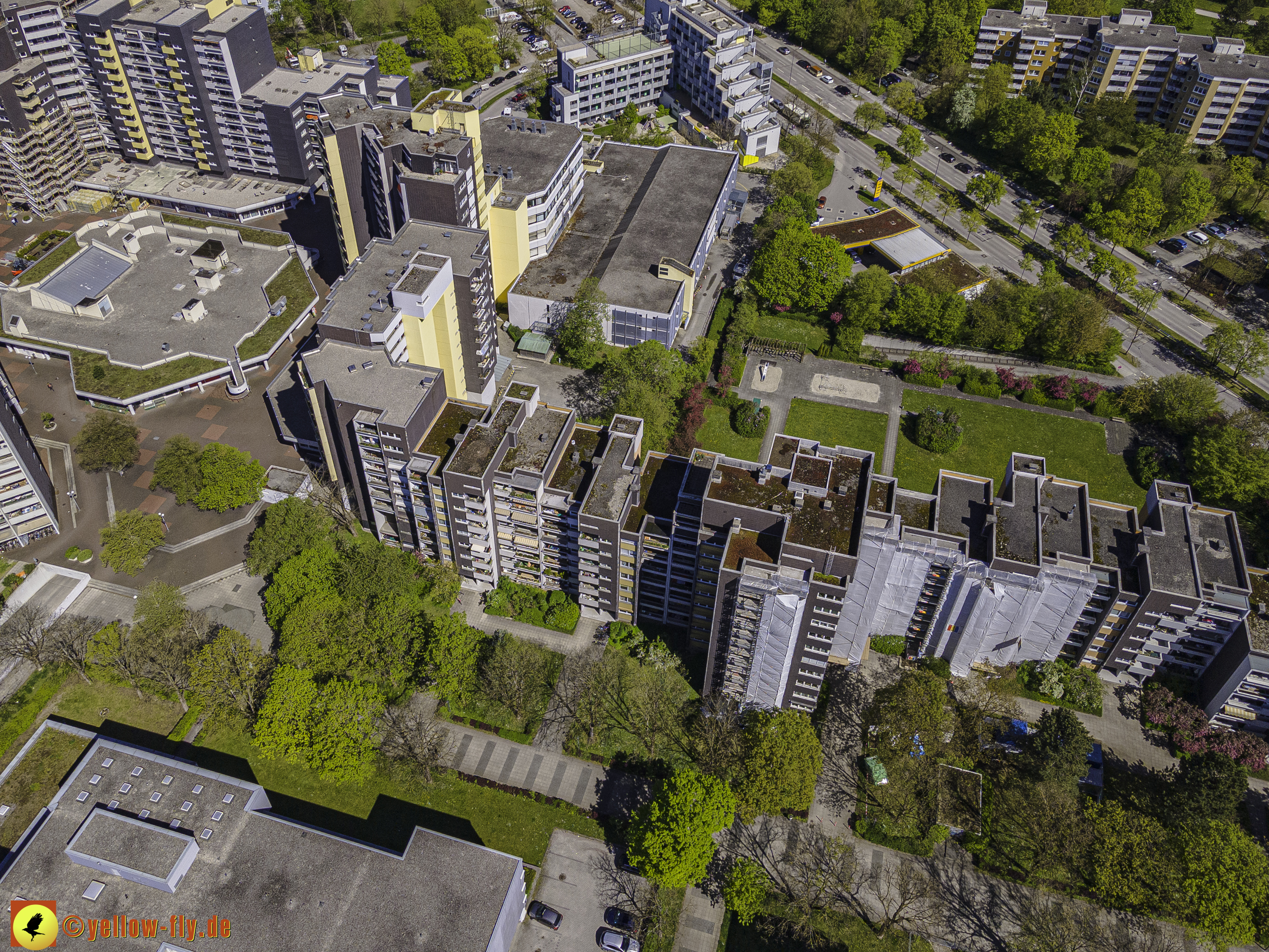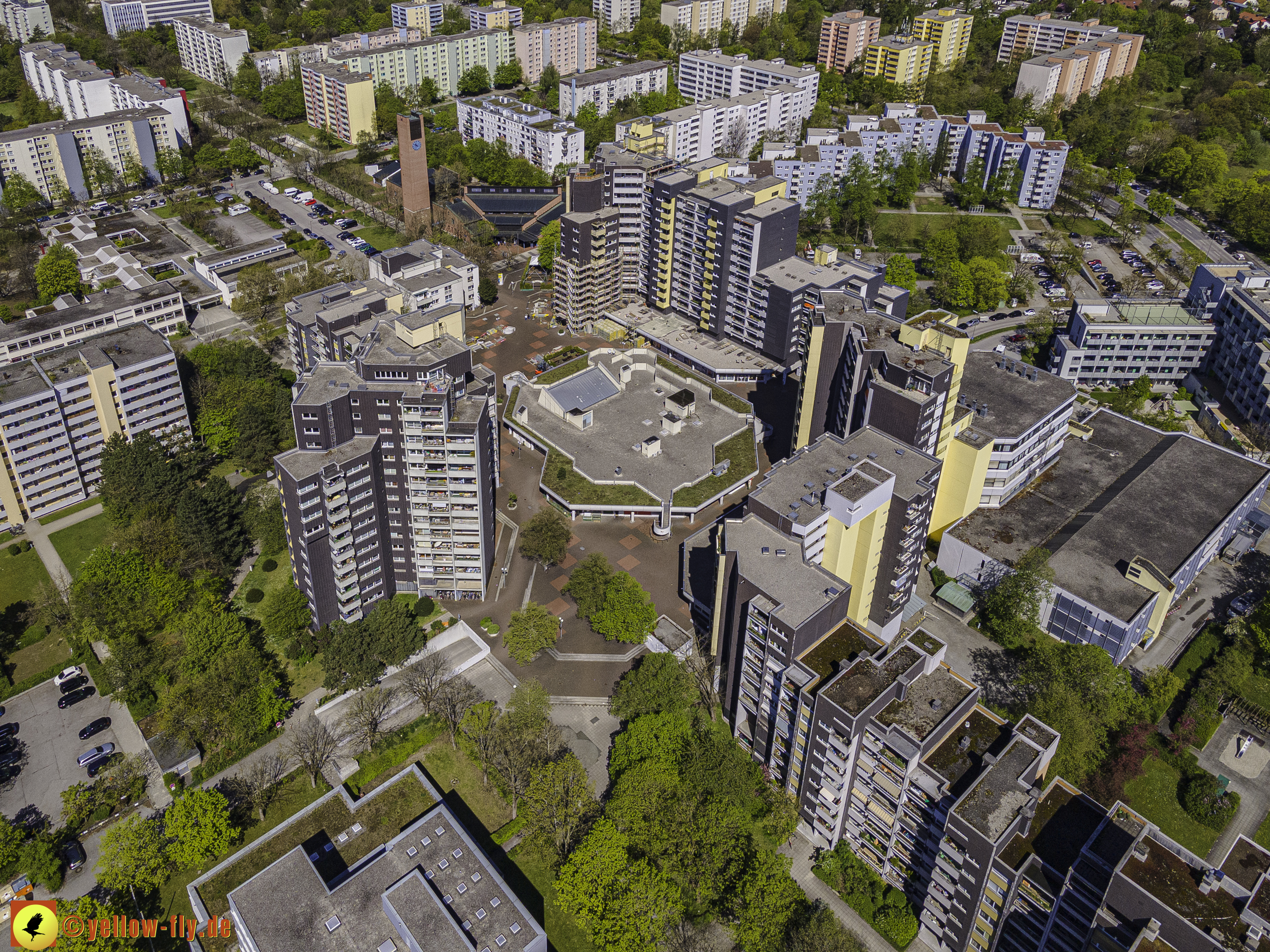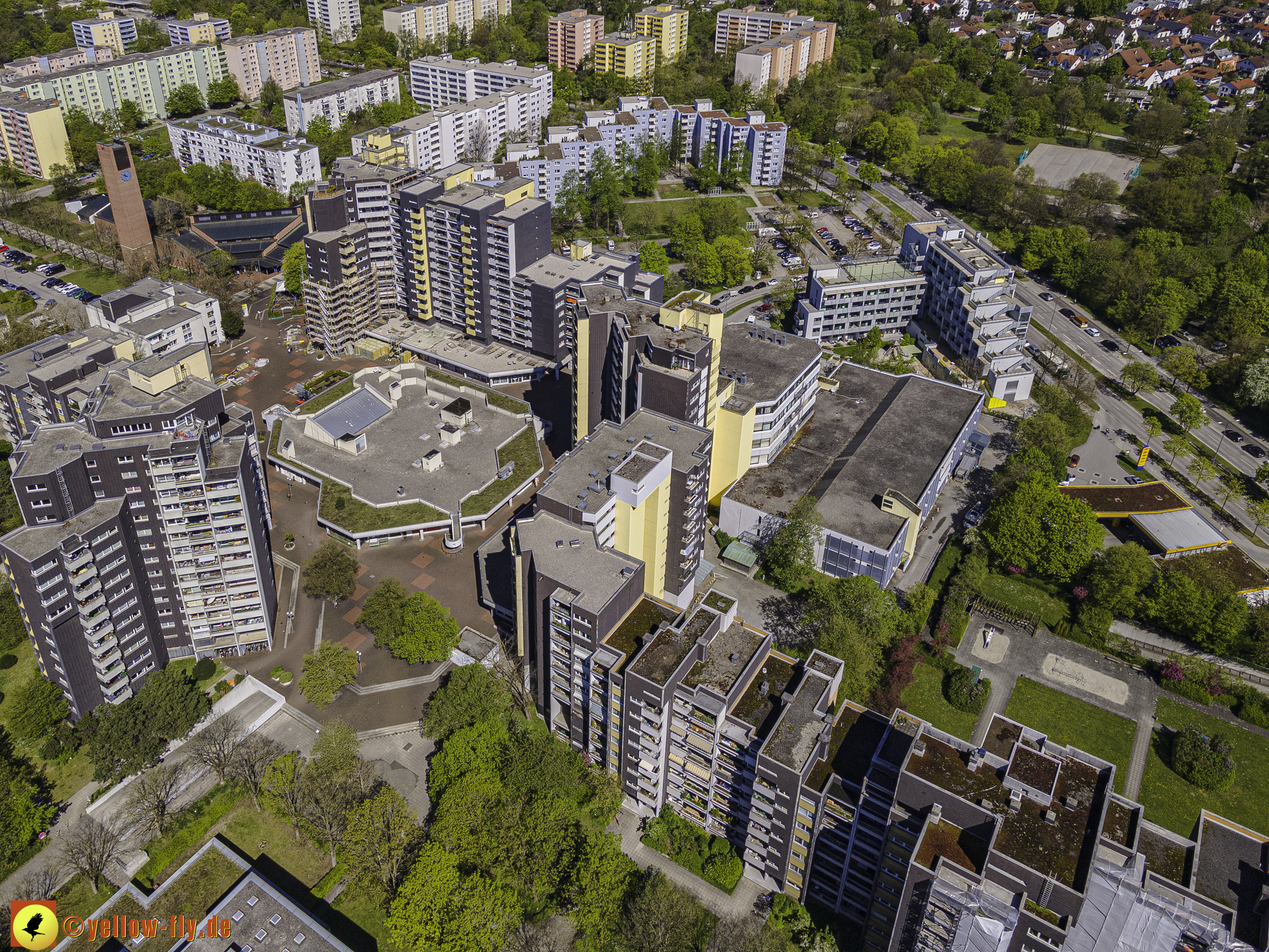Die aktuellen Luftbilder zeigen die beiden Wohnanlagen, das für Neuperlach so wichtige Marx-Zentrum,