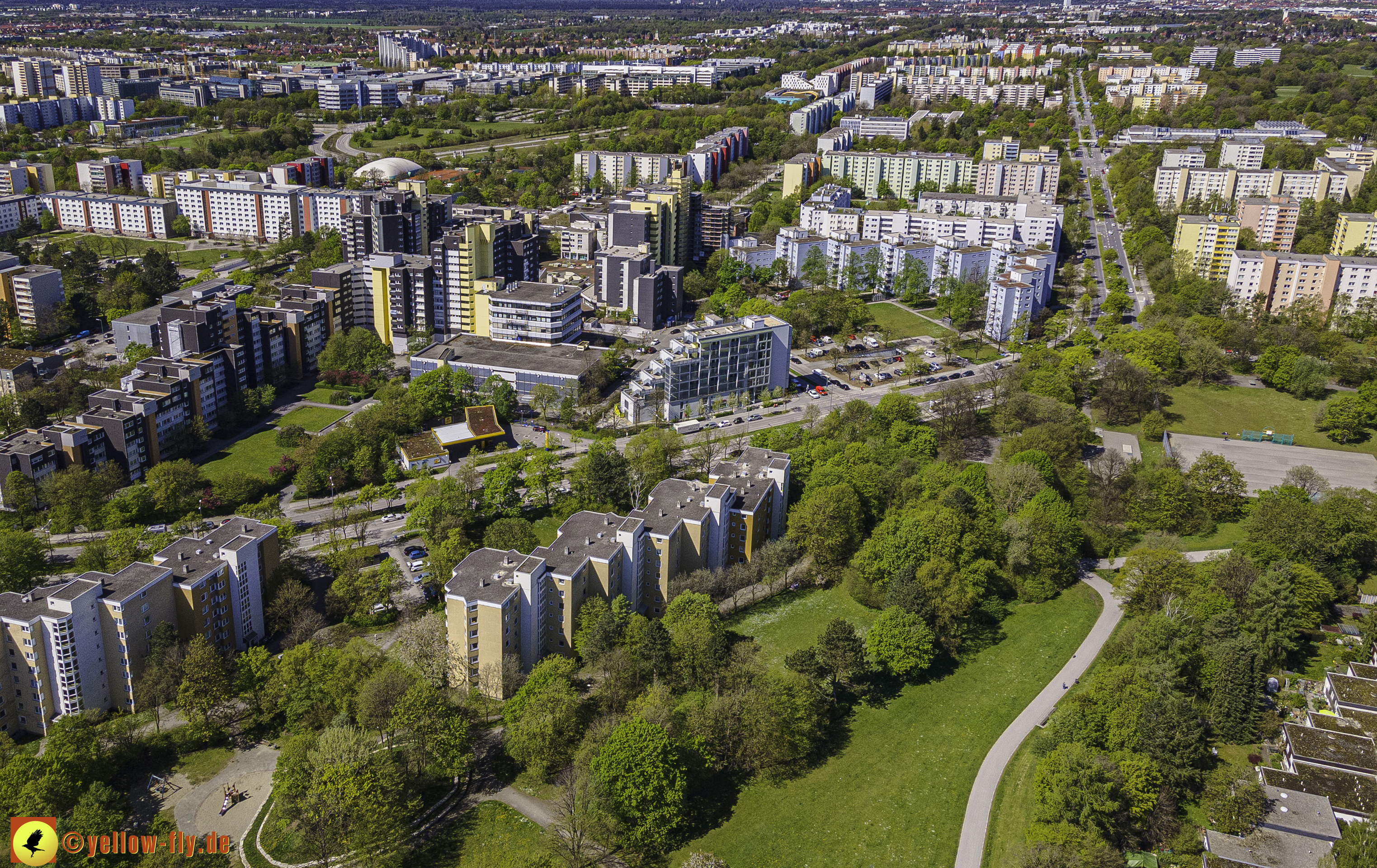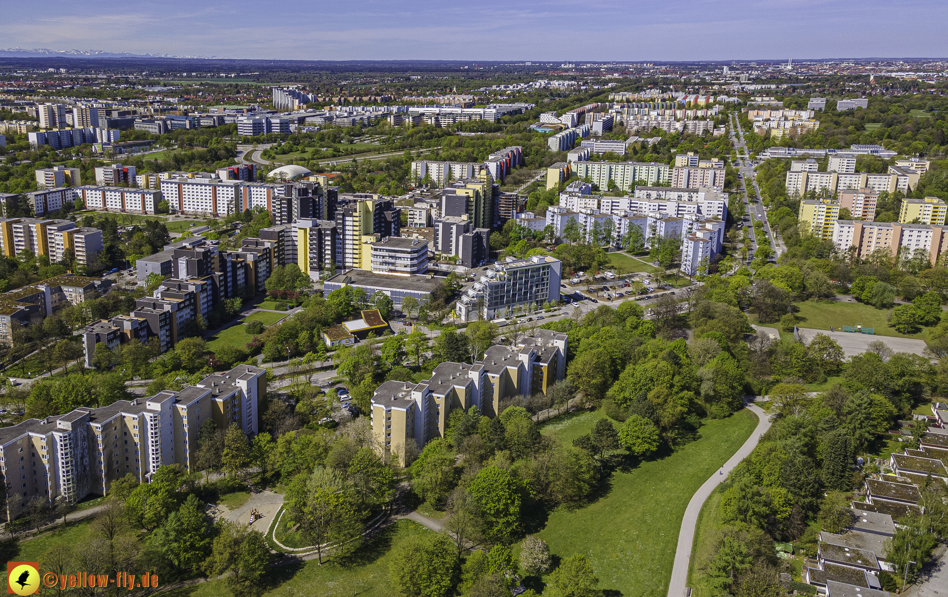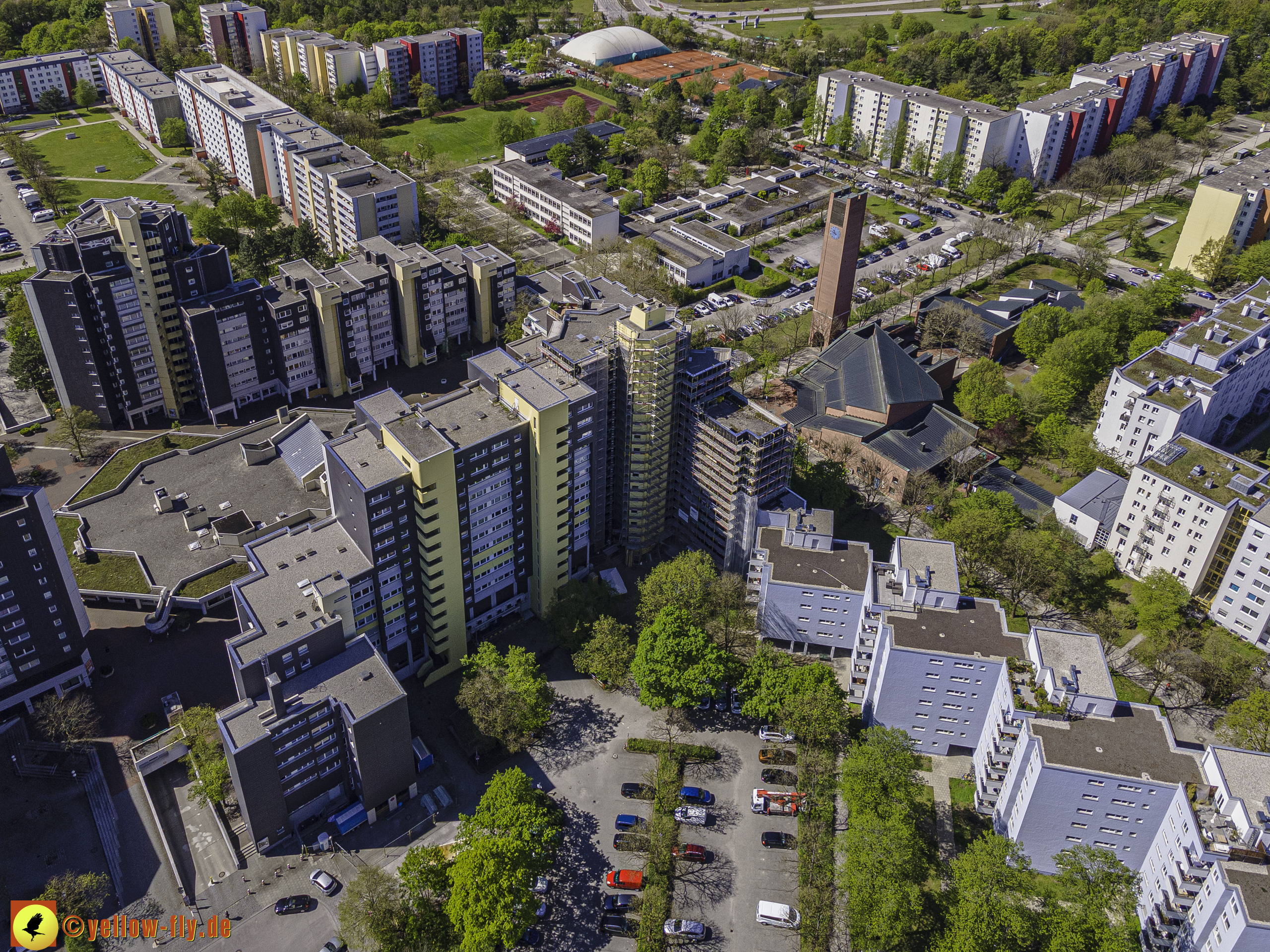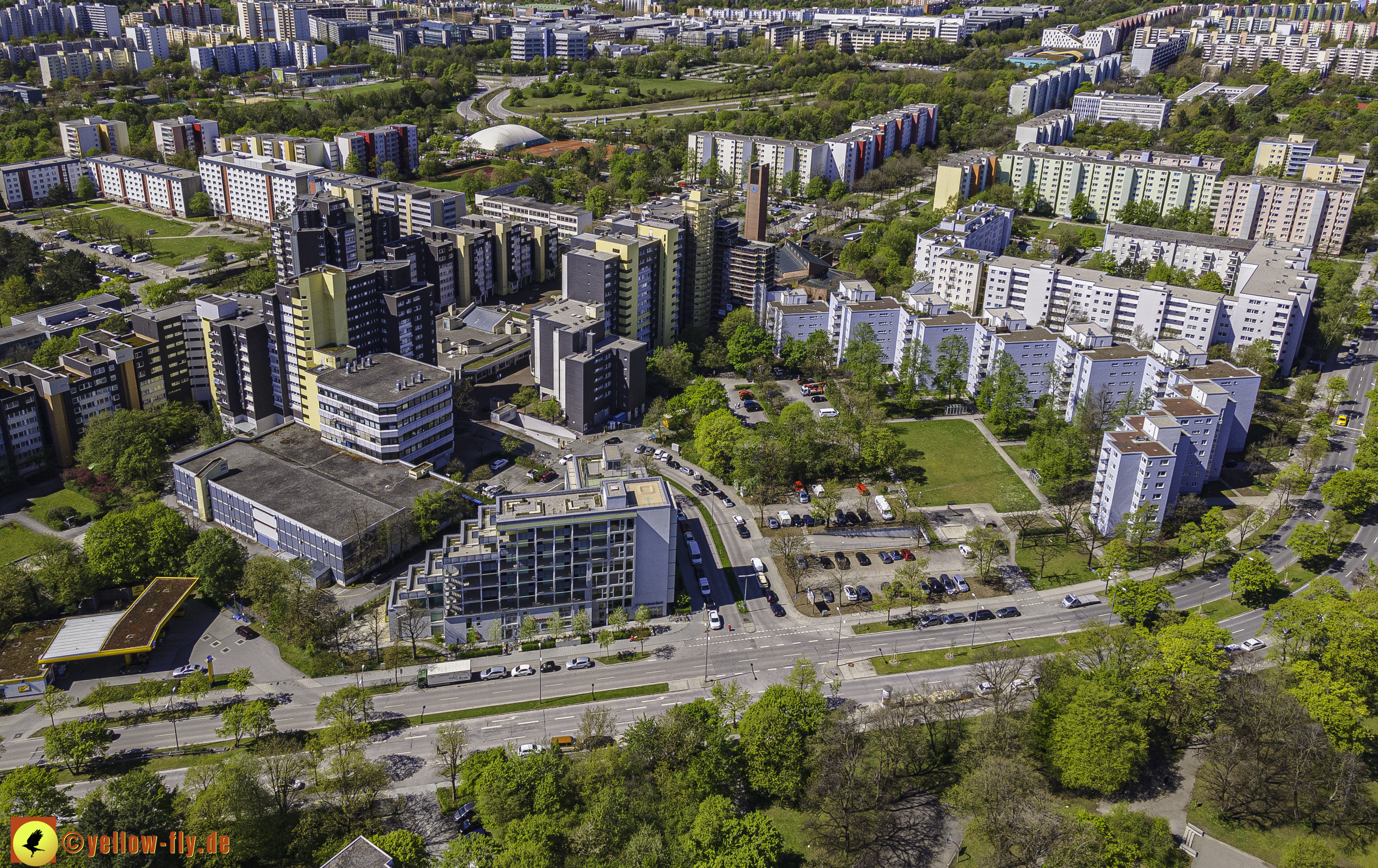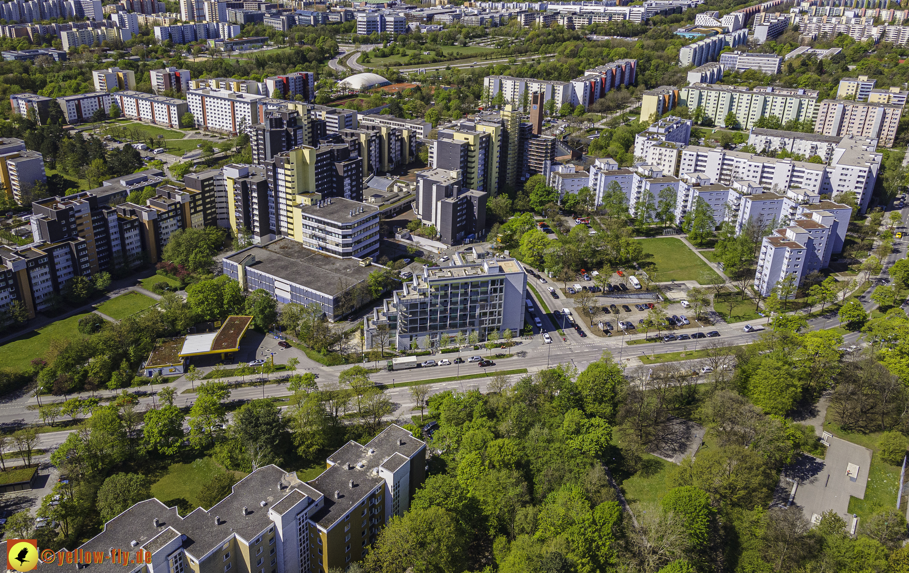 Die aktuellen Luftbilder zeigen die beiden Wohnanlagen, das für Neuperlach so wichtige Marx-Zentrum,
