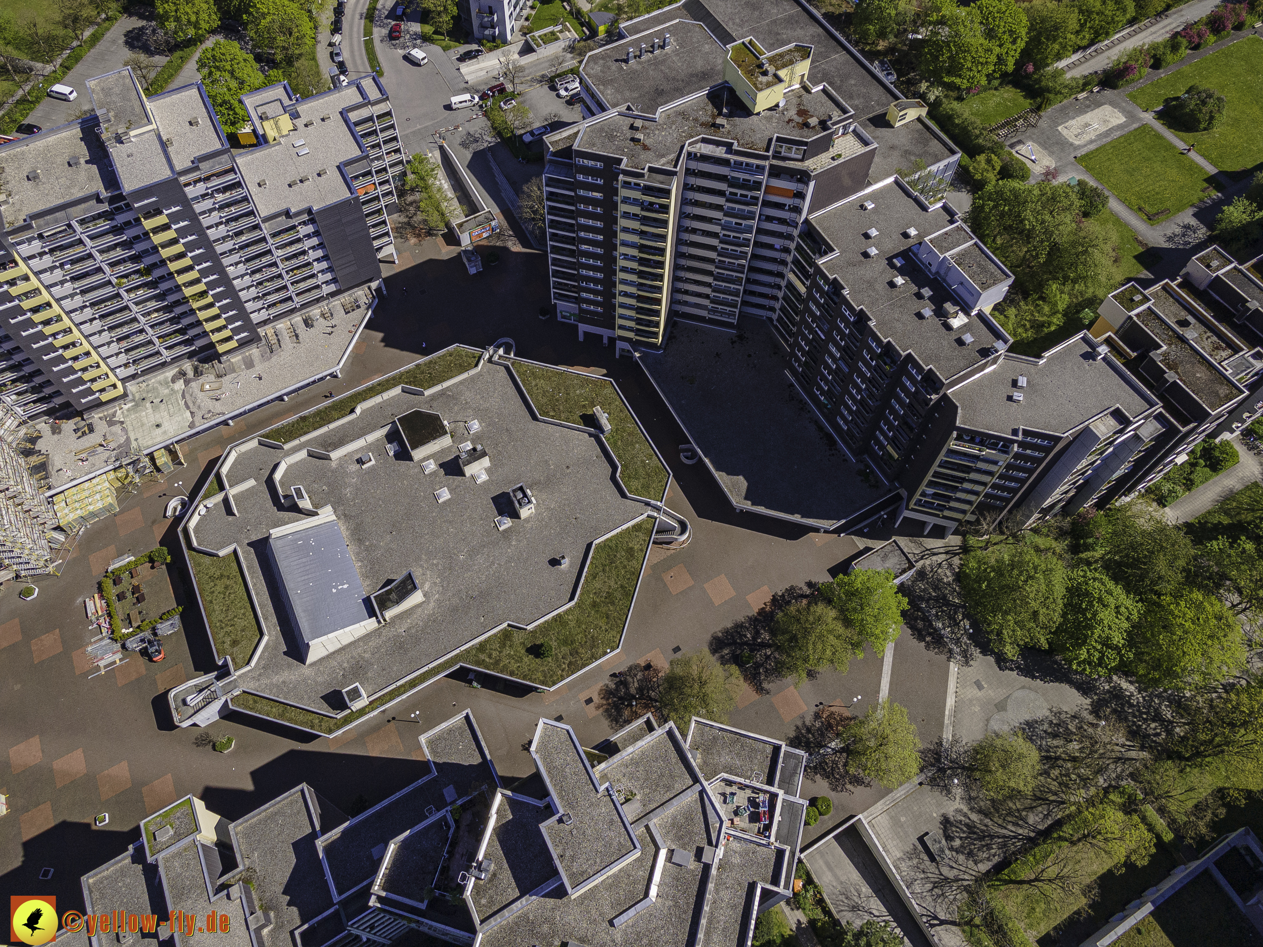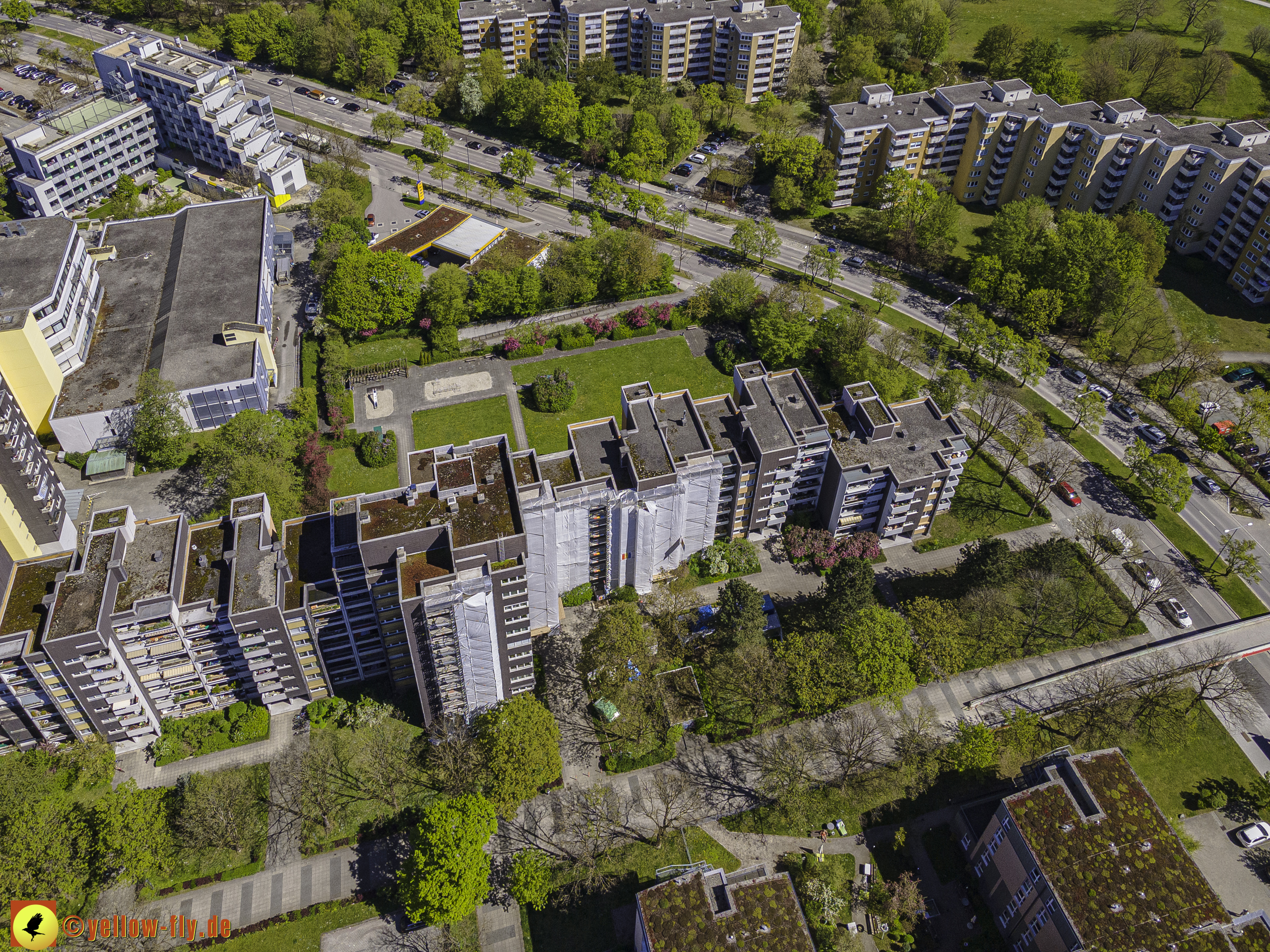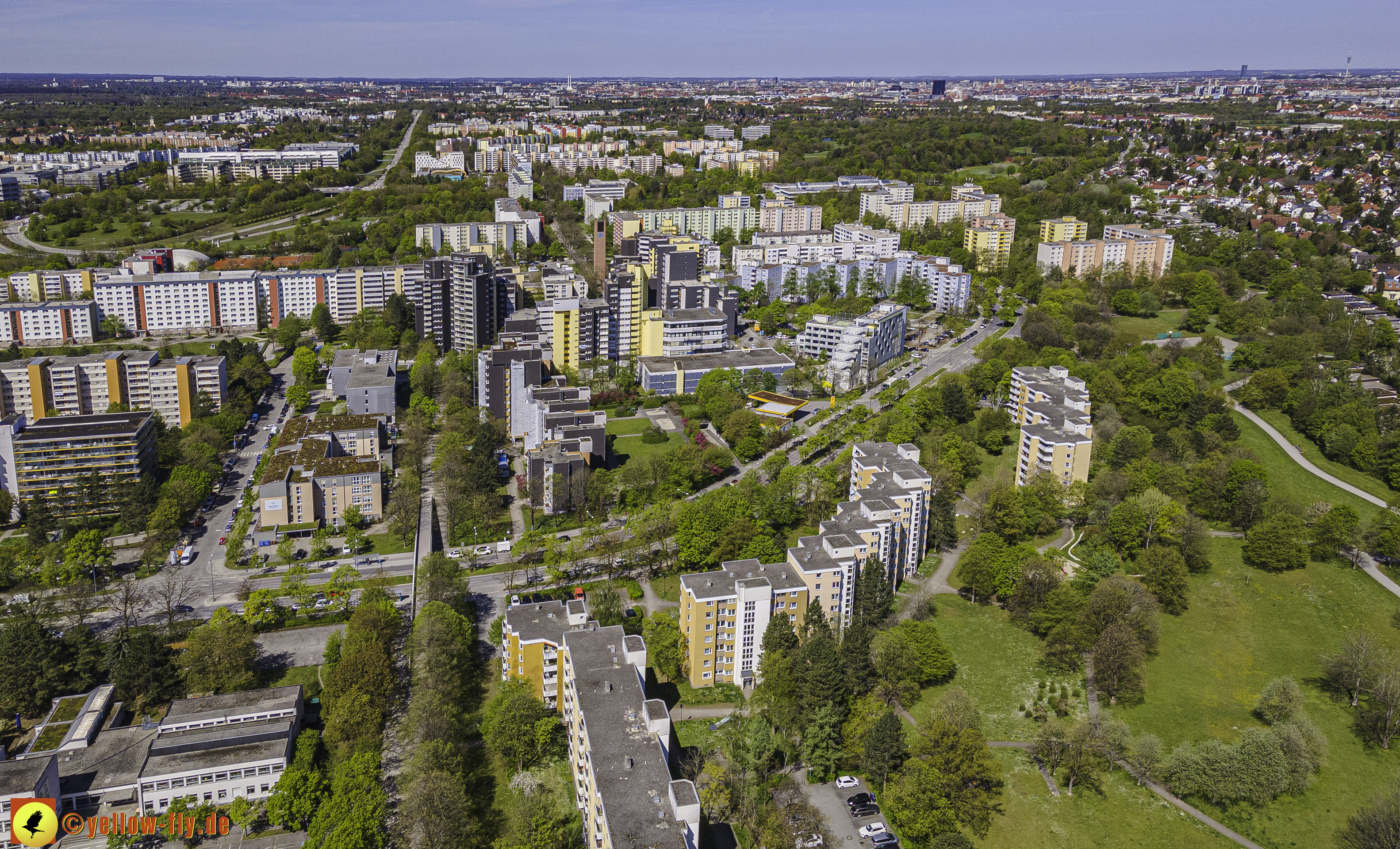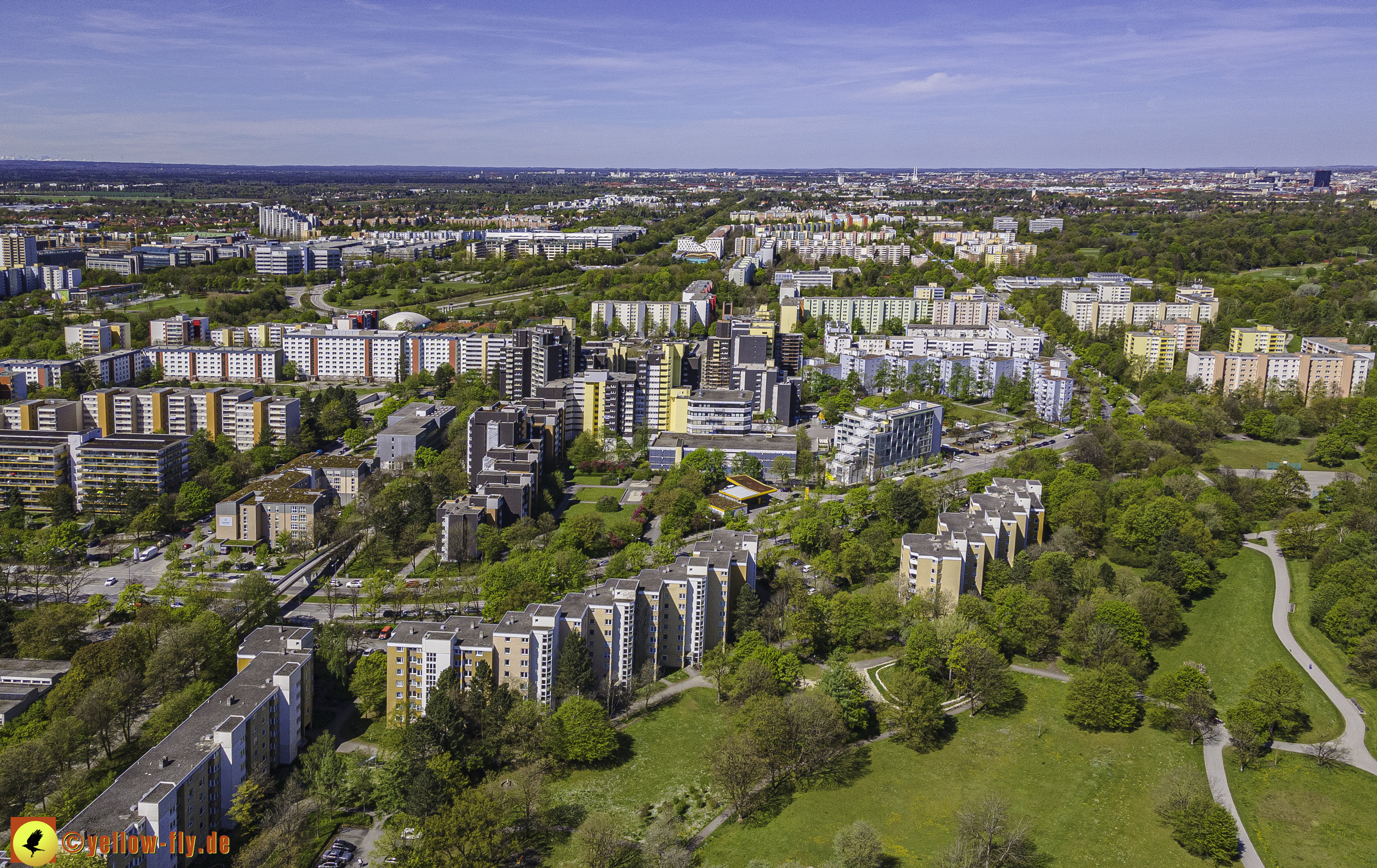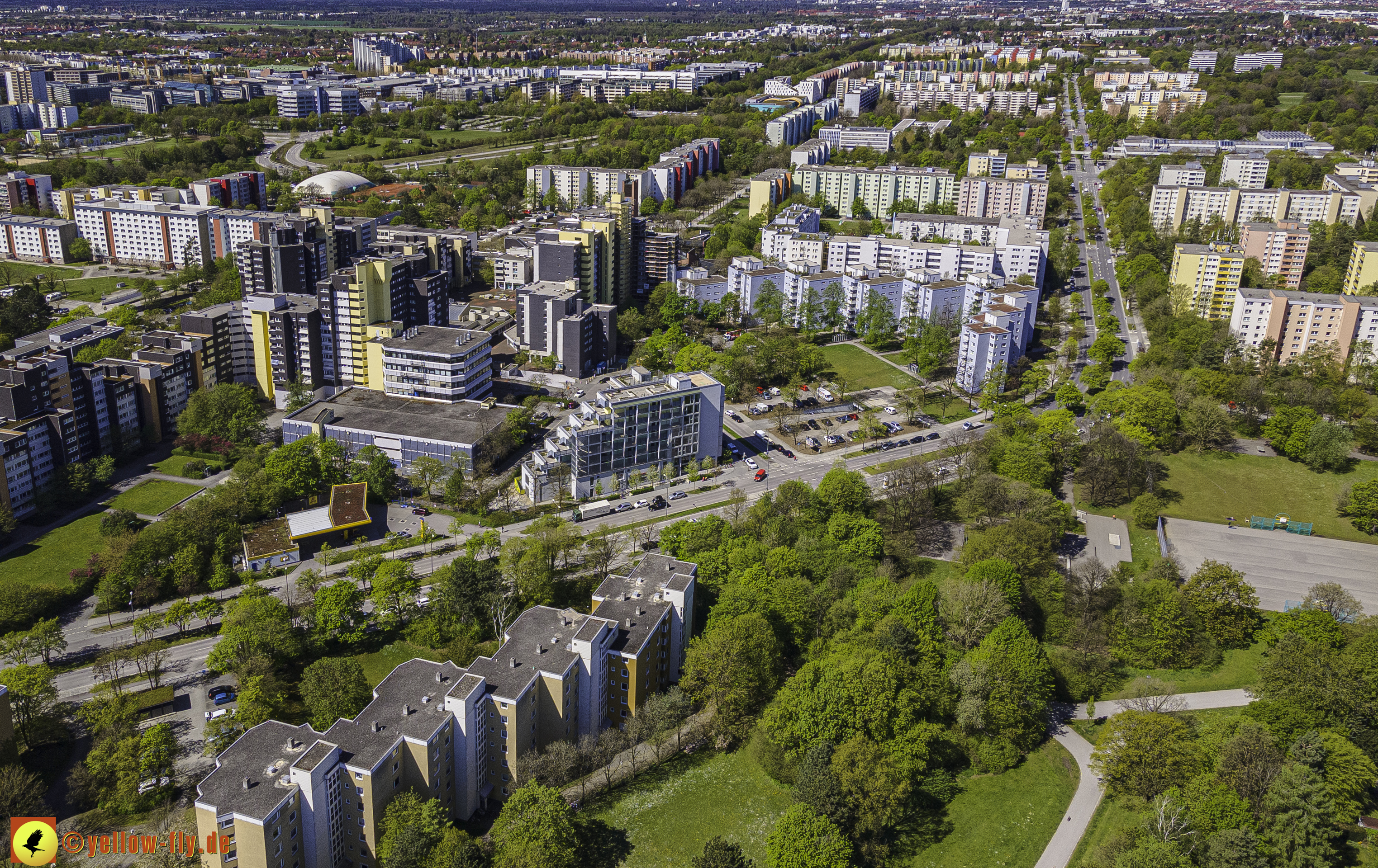 Die aktuellen Luftbilder zeigen die beiden Wohnanlagen, das für Neuperlach so wichtige Marx-Zentrum,