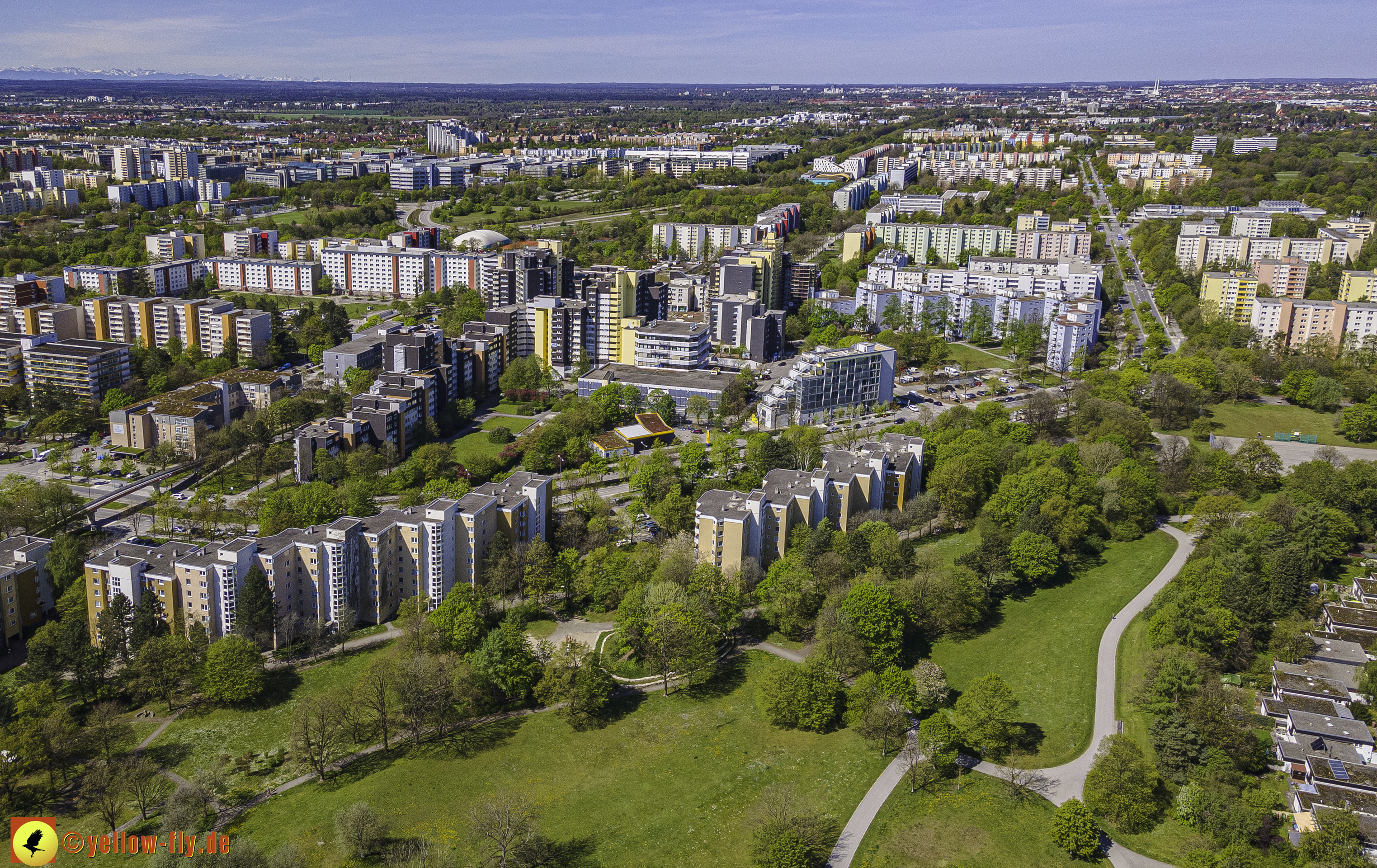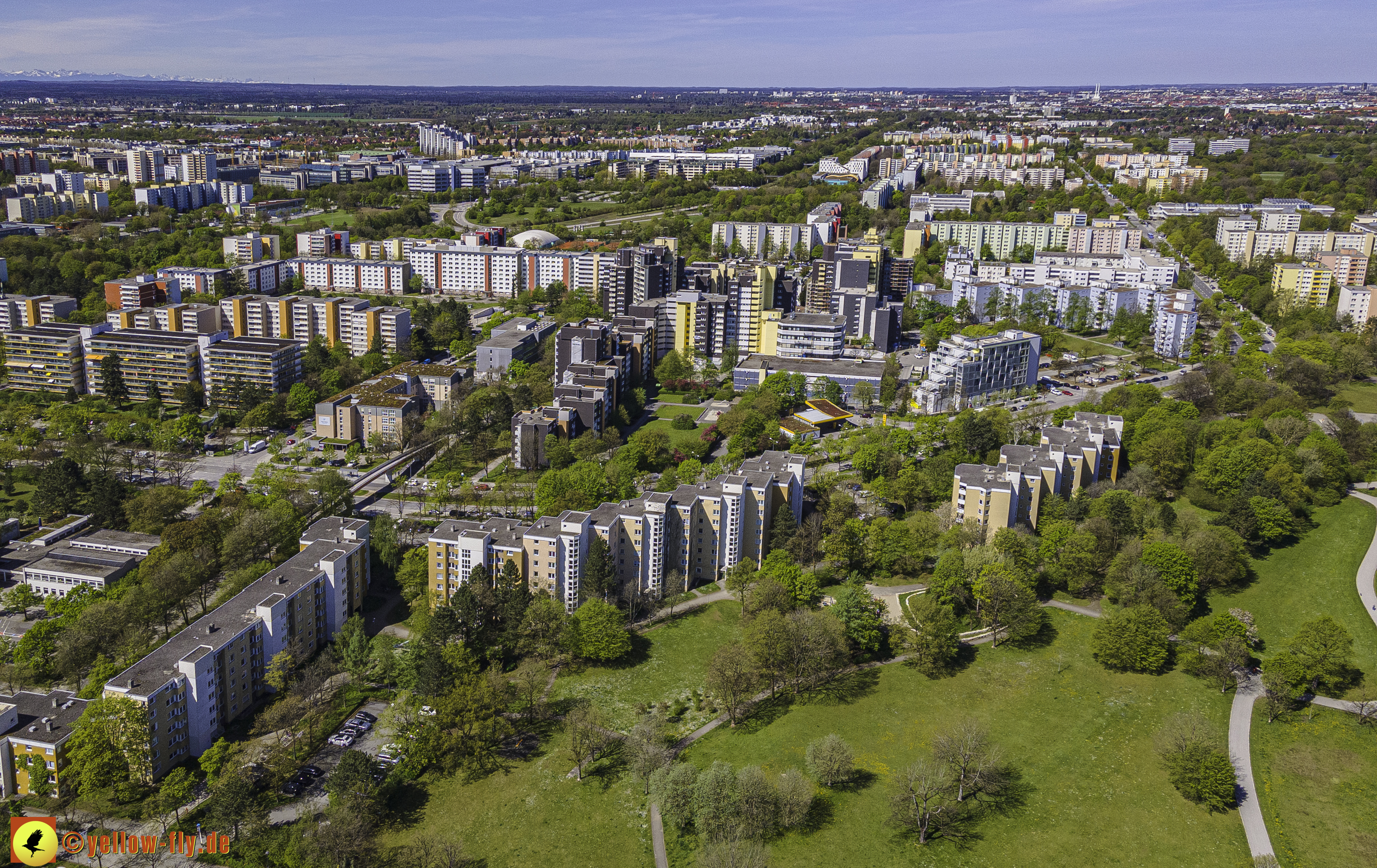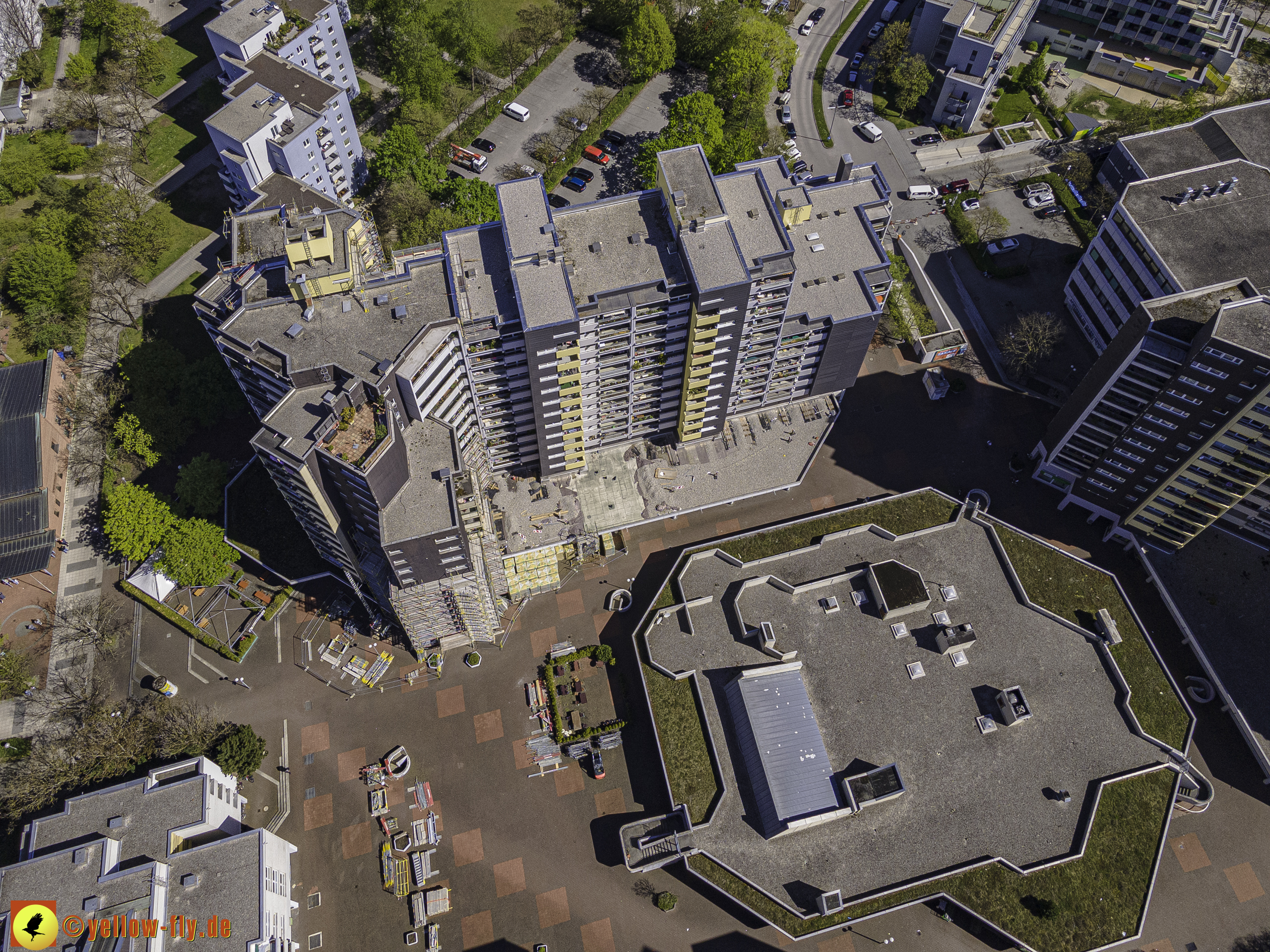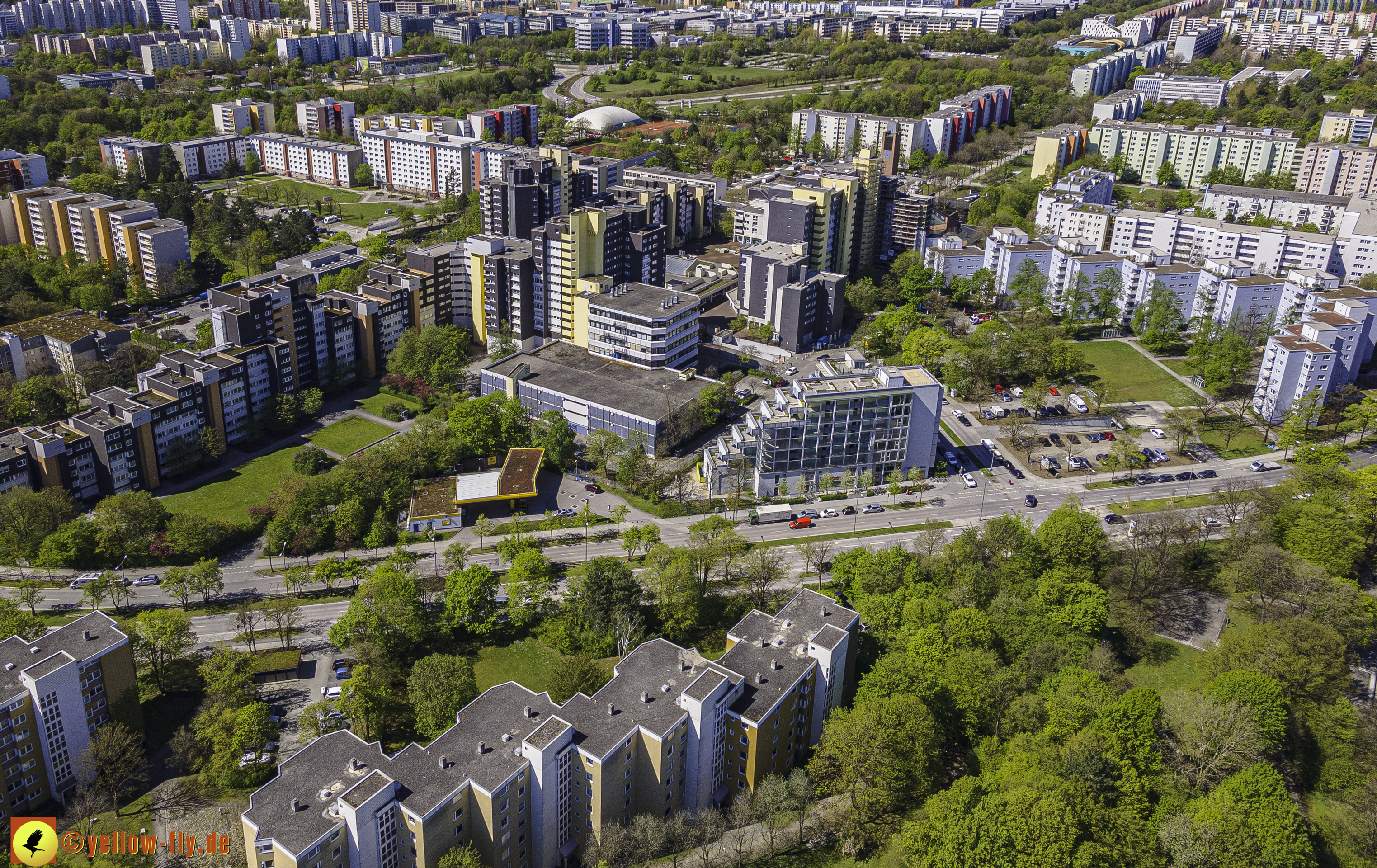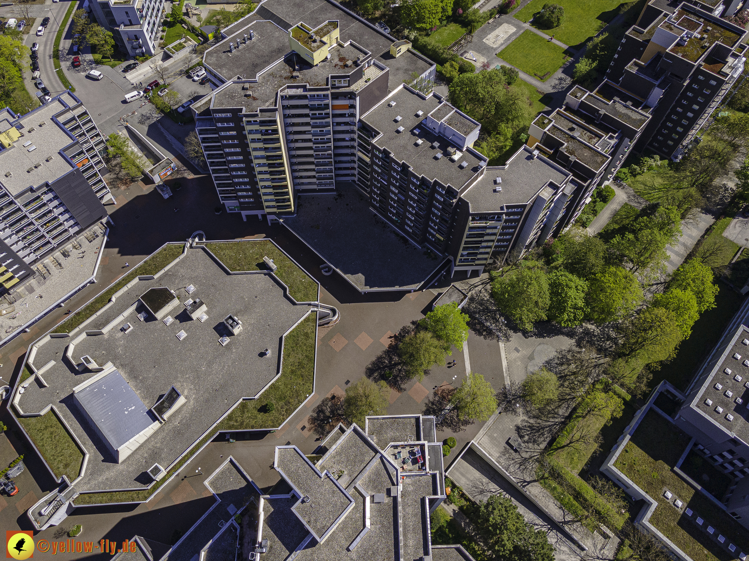 Die aktuellen Luftbilder zeigen die beiden Wohnanlagen, das für Neuperlach so wichtige Marx-Zentrum,