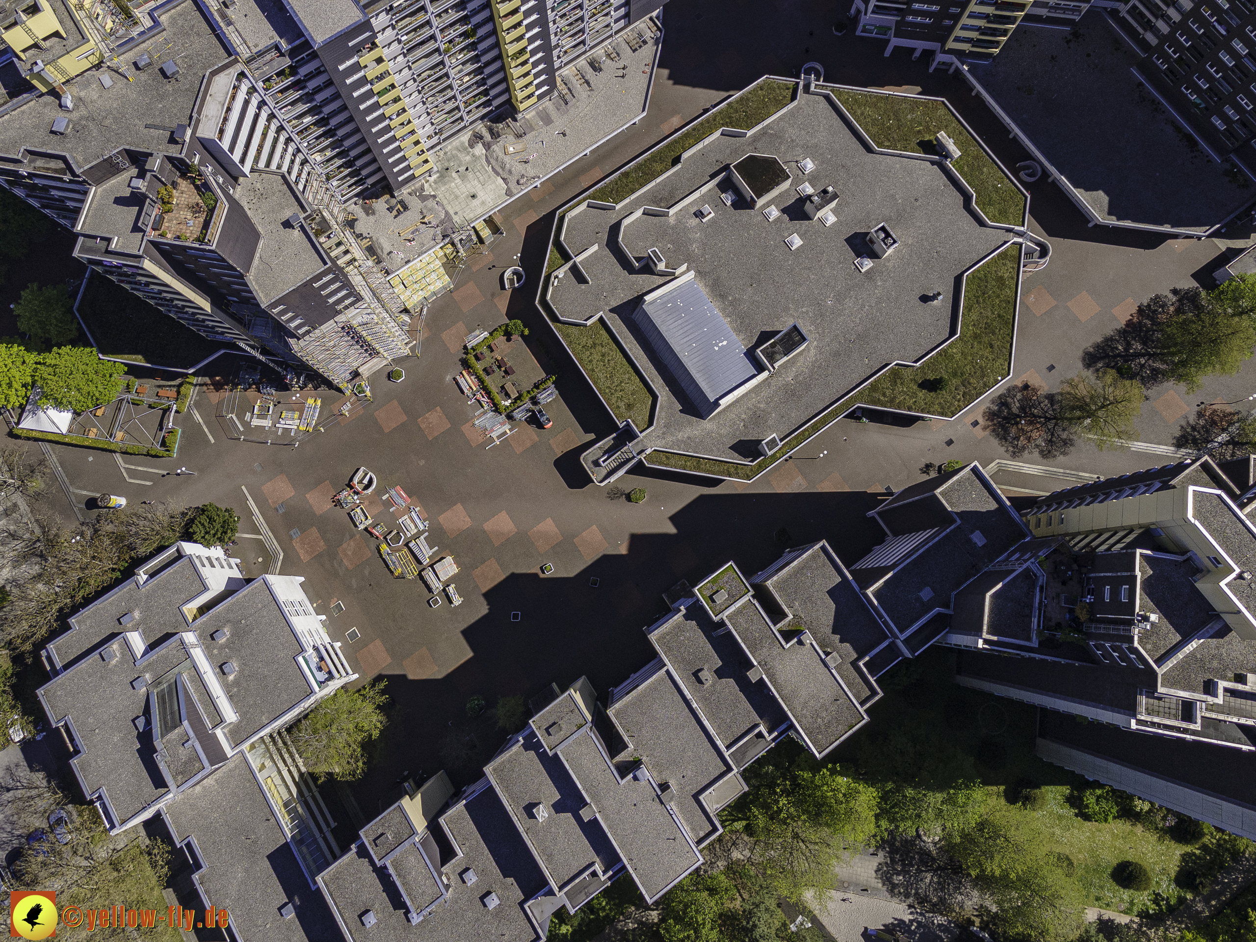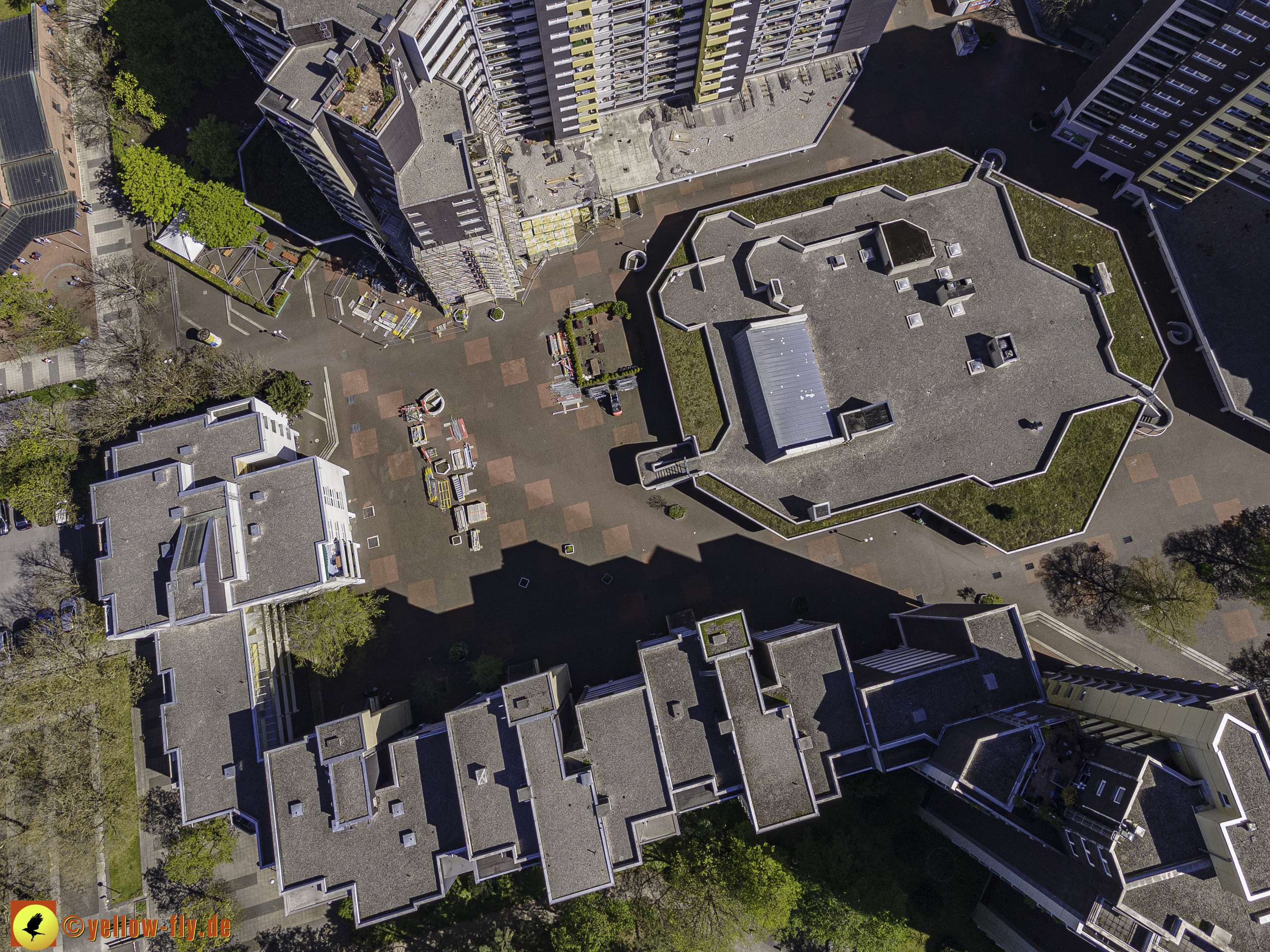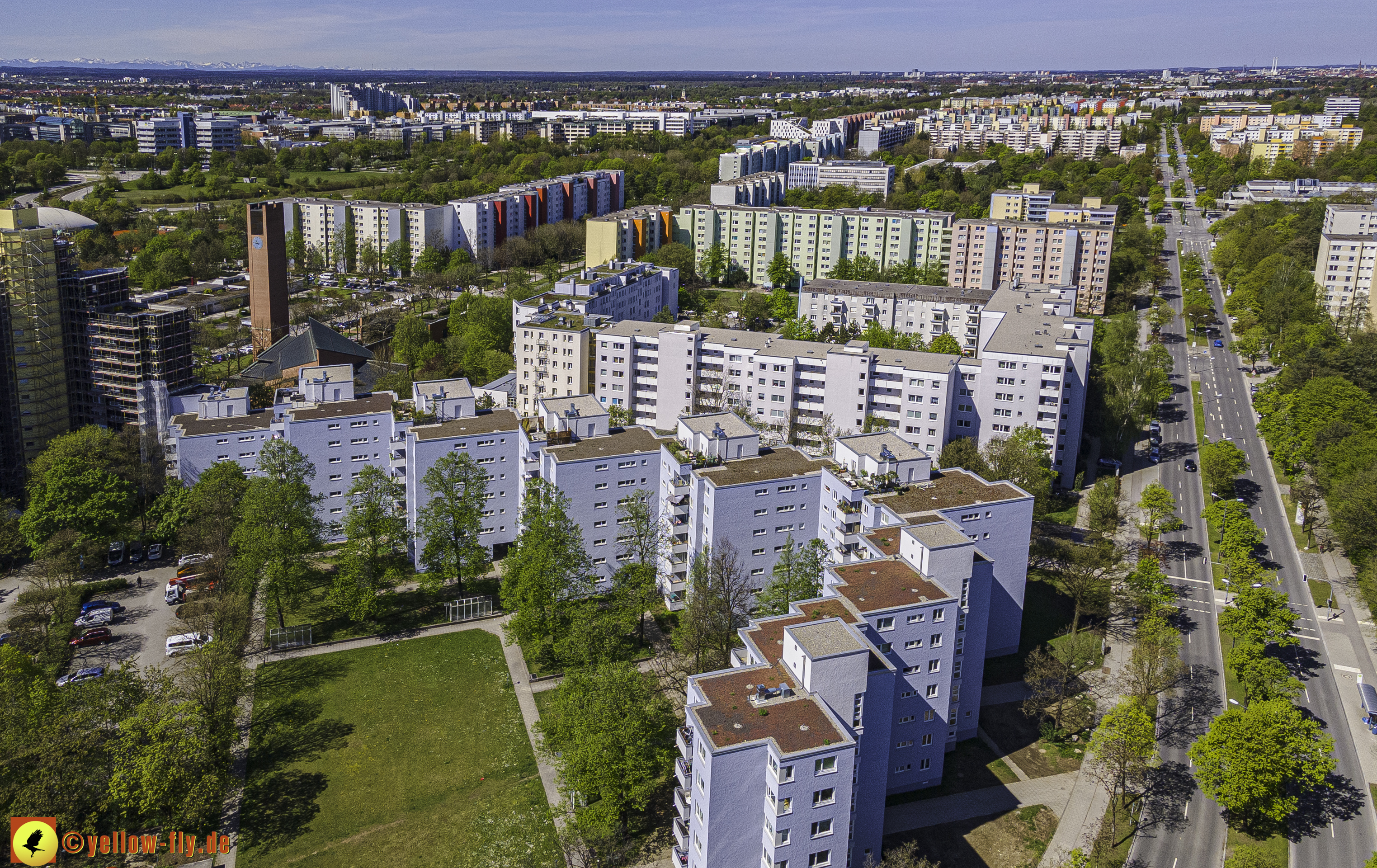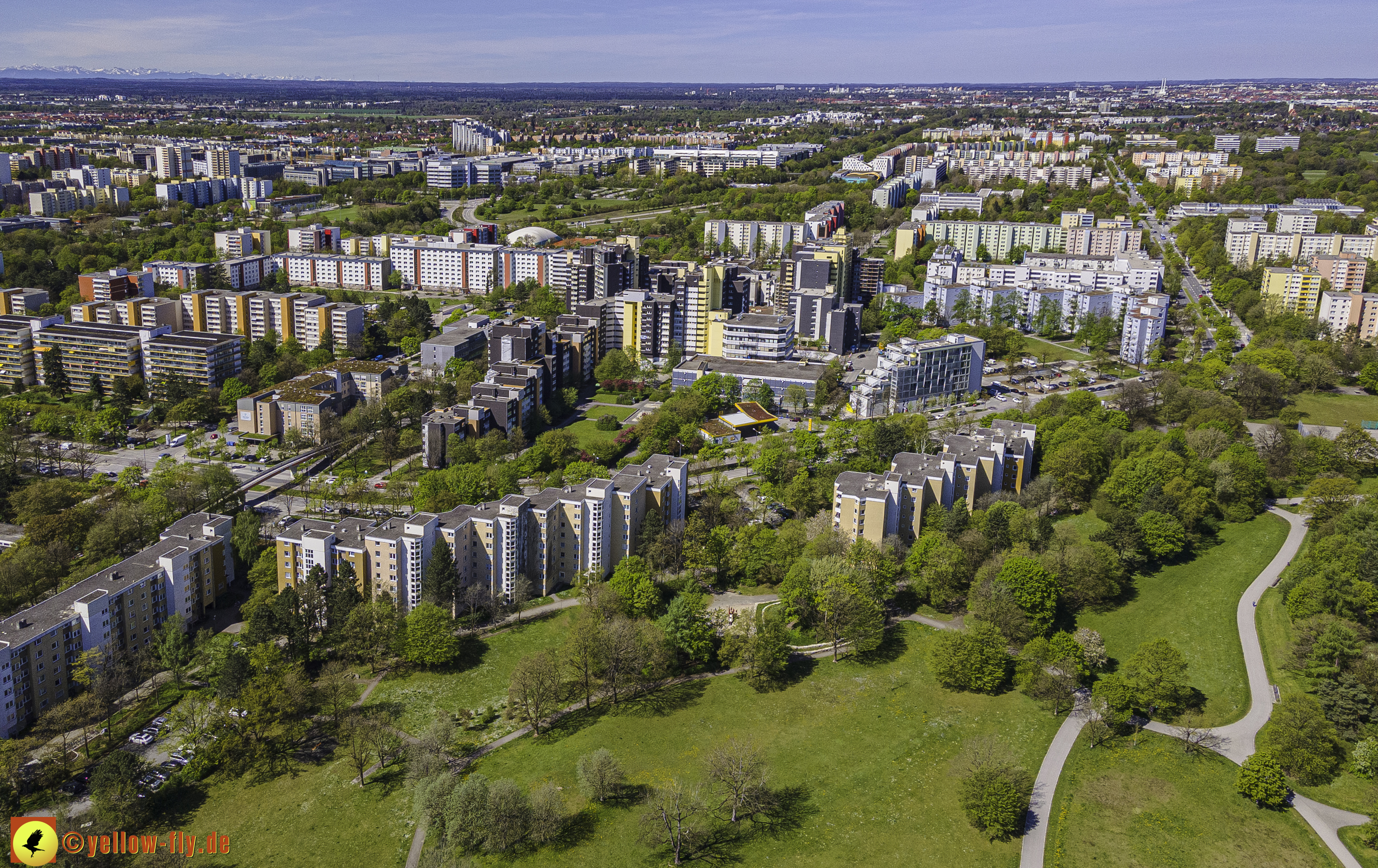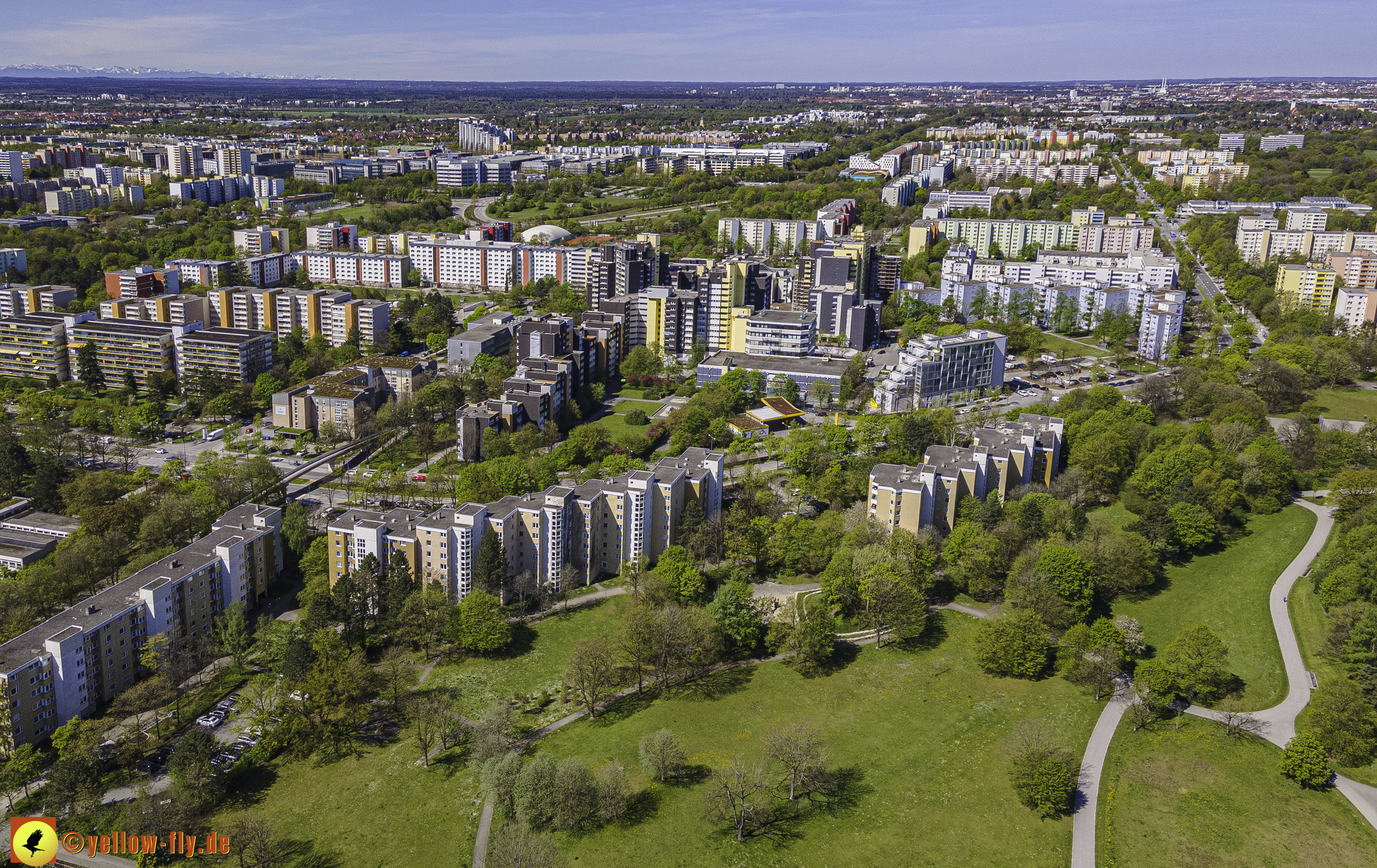 Die aktuellen Luftbilder zeigen die beiden Wohnanlagen, das für Neuperlach so wichtige Marx-Zentrum,