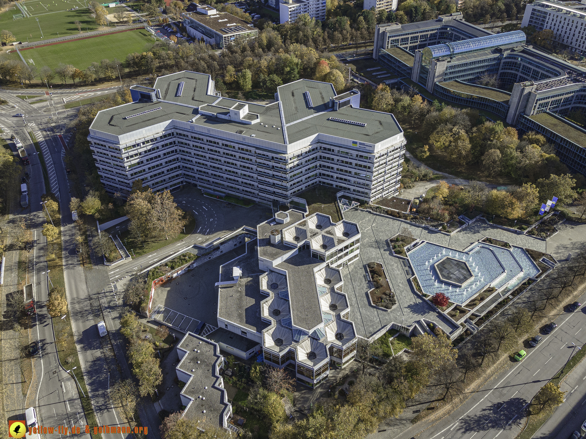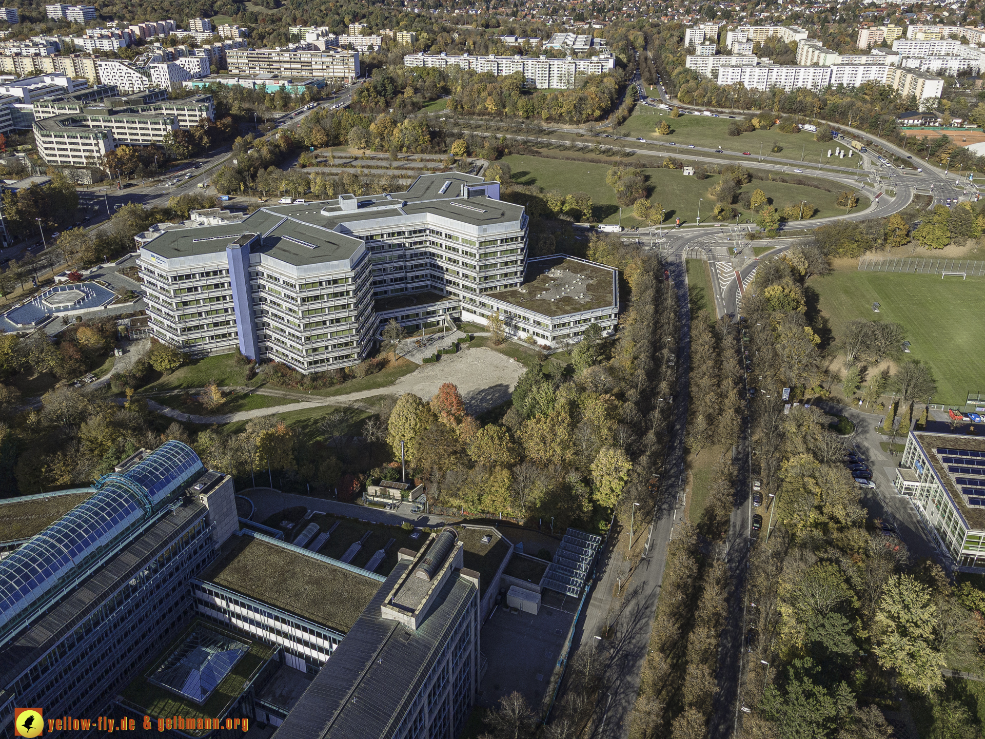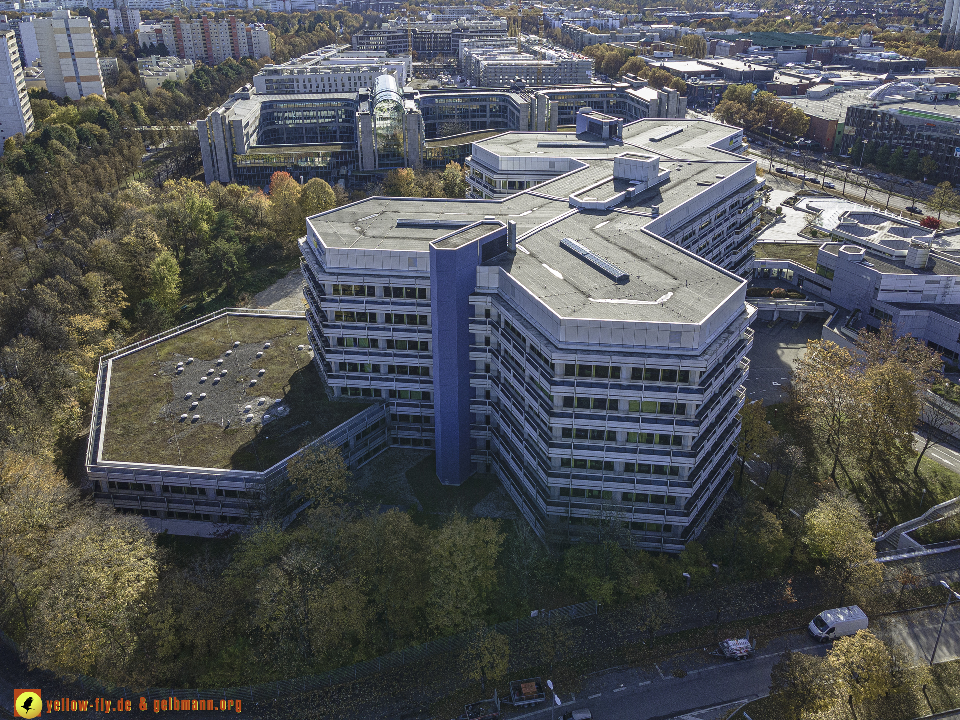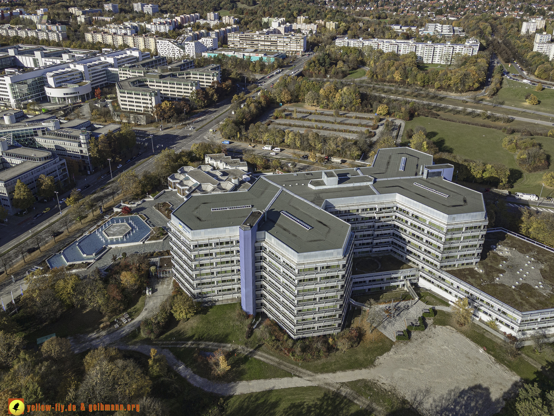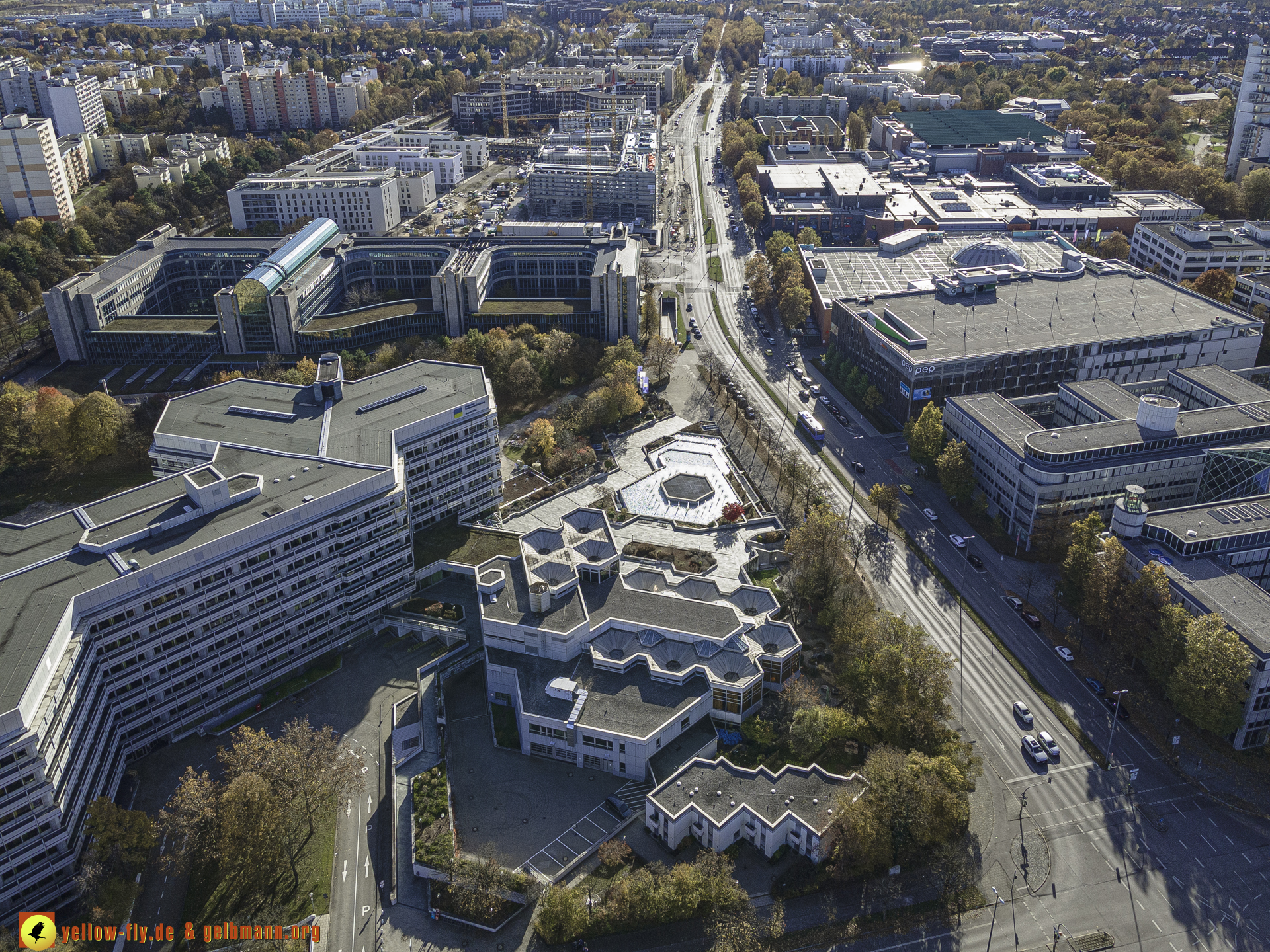 "Blick auf die "Deutsche Rentenversicherung Bayern-Süd" und WACKER-Chemie in Neuperlach