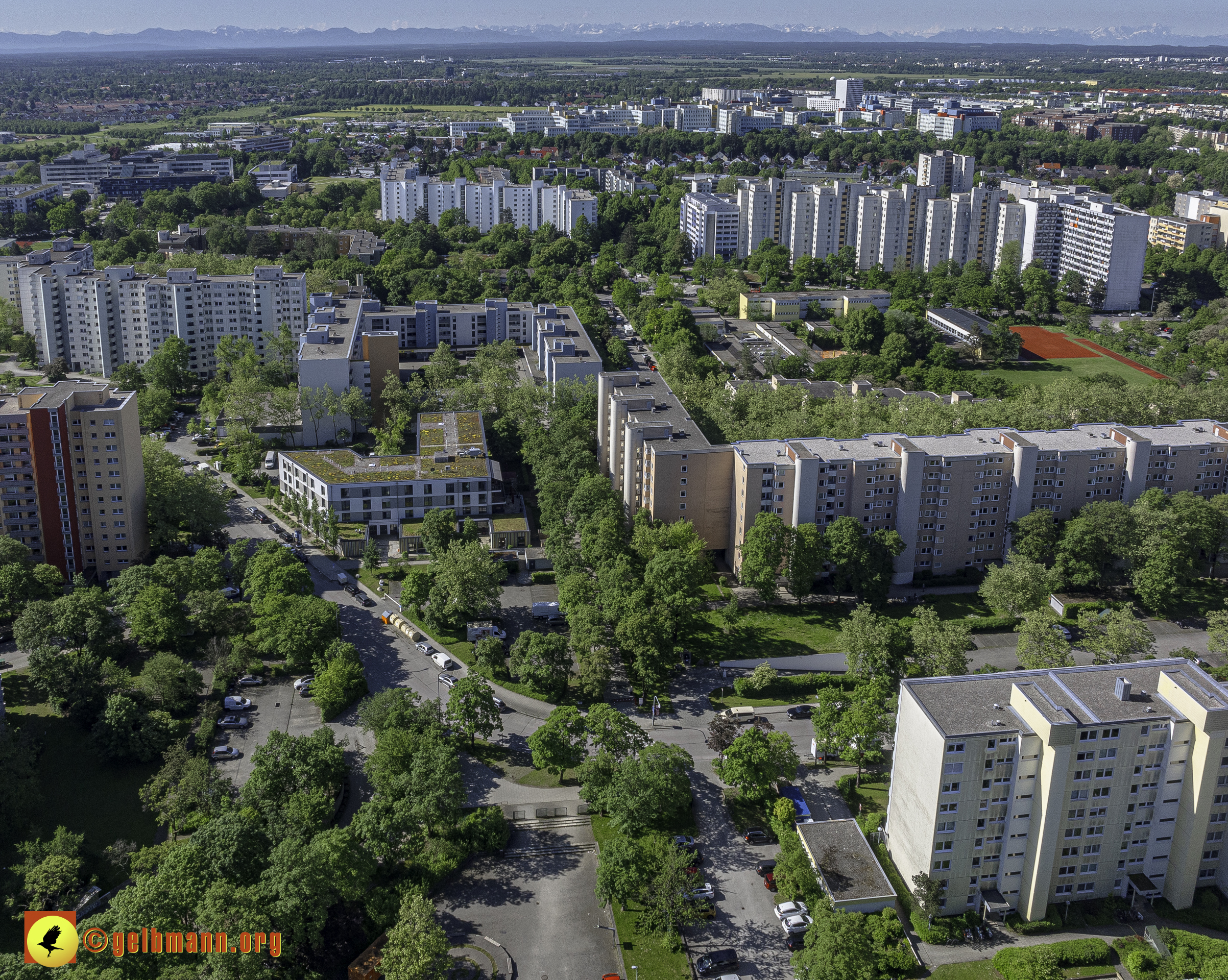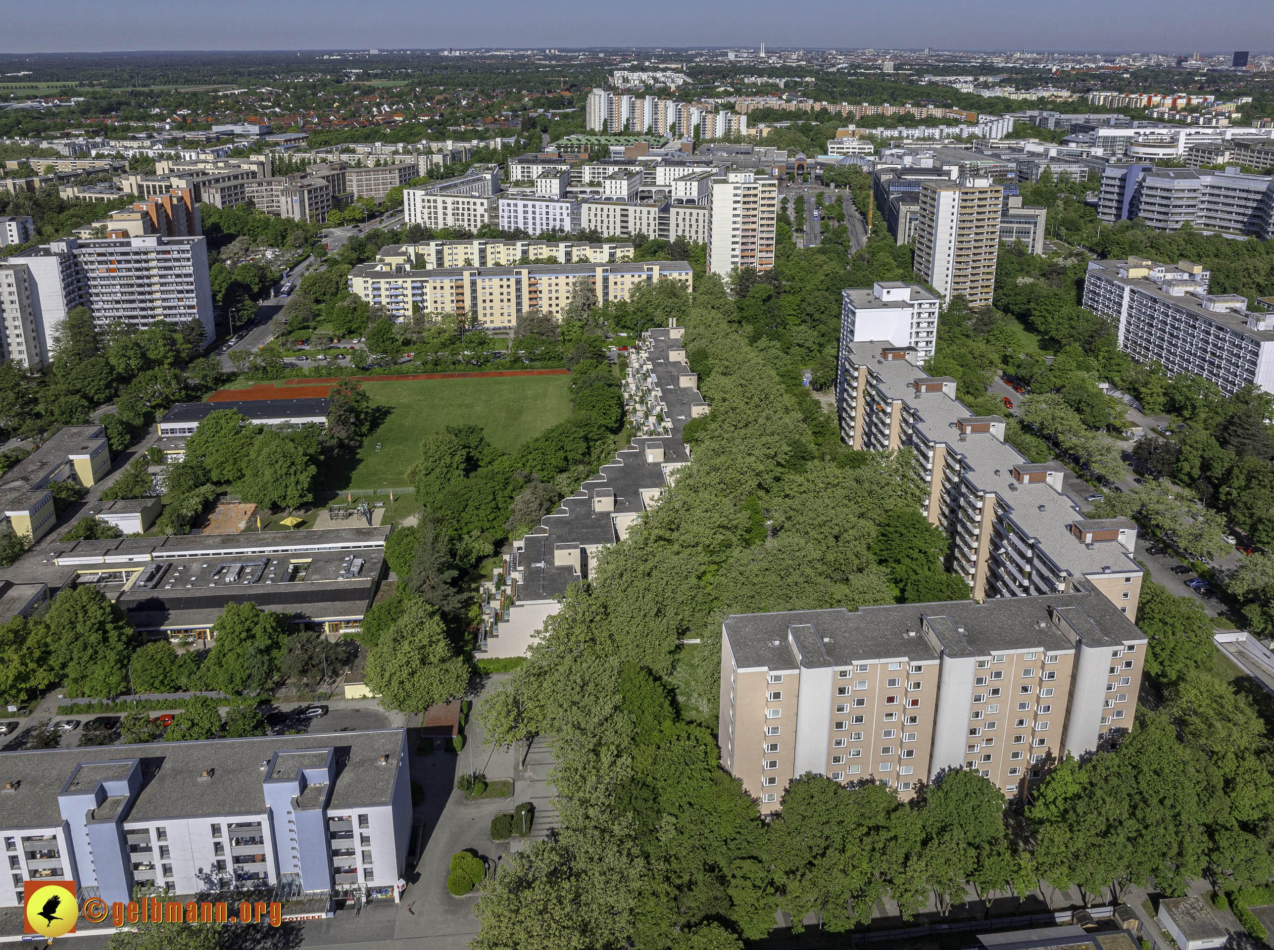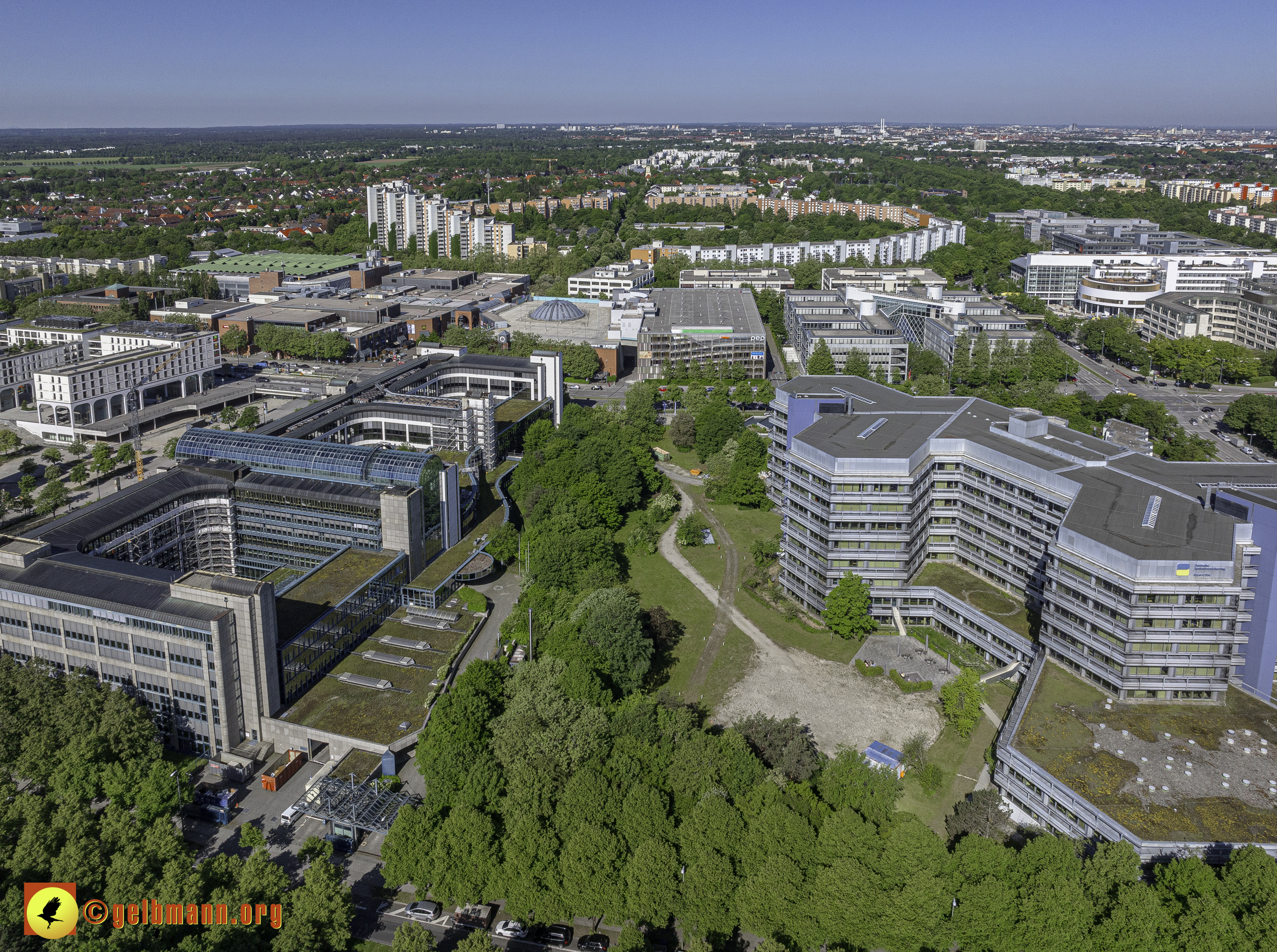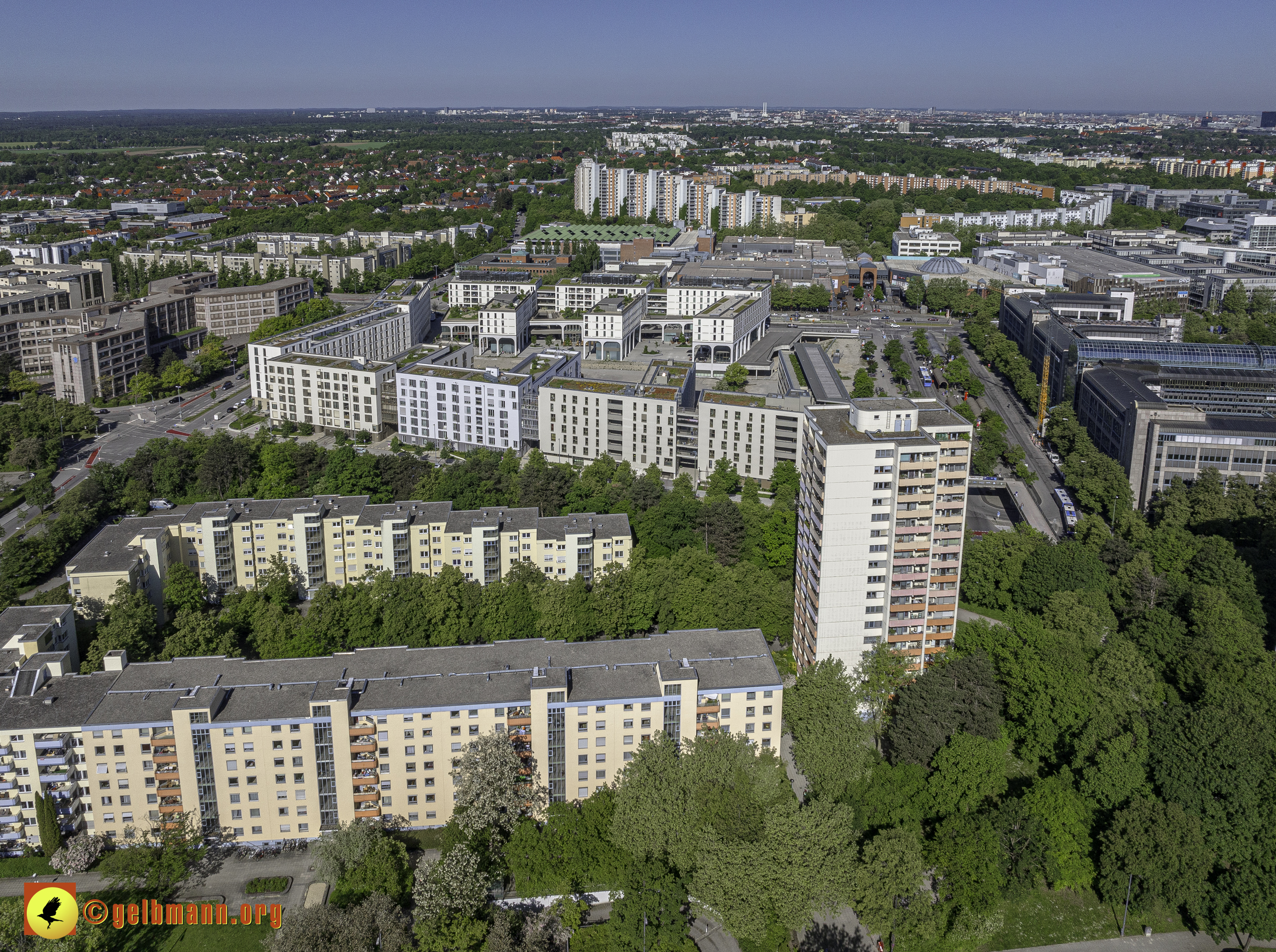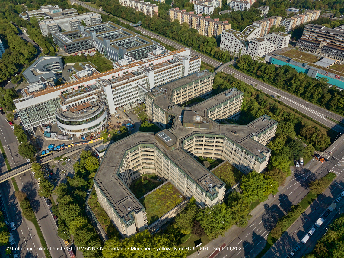 Das PEP, der Wohnring, das ehemalige Allianzgebäude, die Zwillingstürme, die Kafka-Aufstockung und das Pflegeheim Perlach Stift sind in meinen Luftaufnahmen zu sehen.