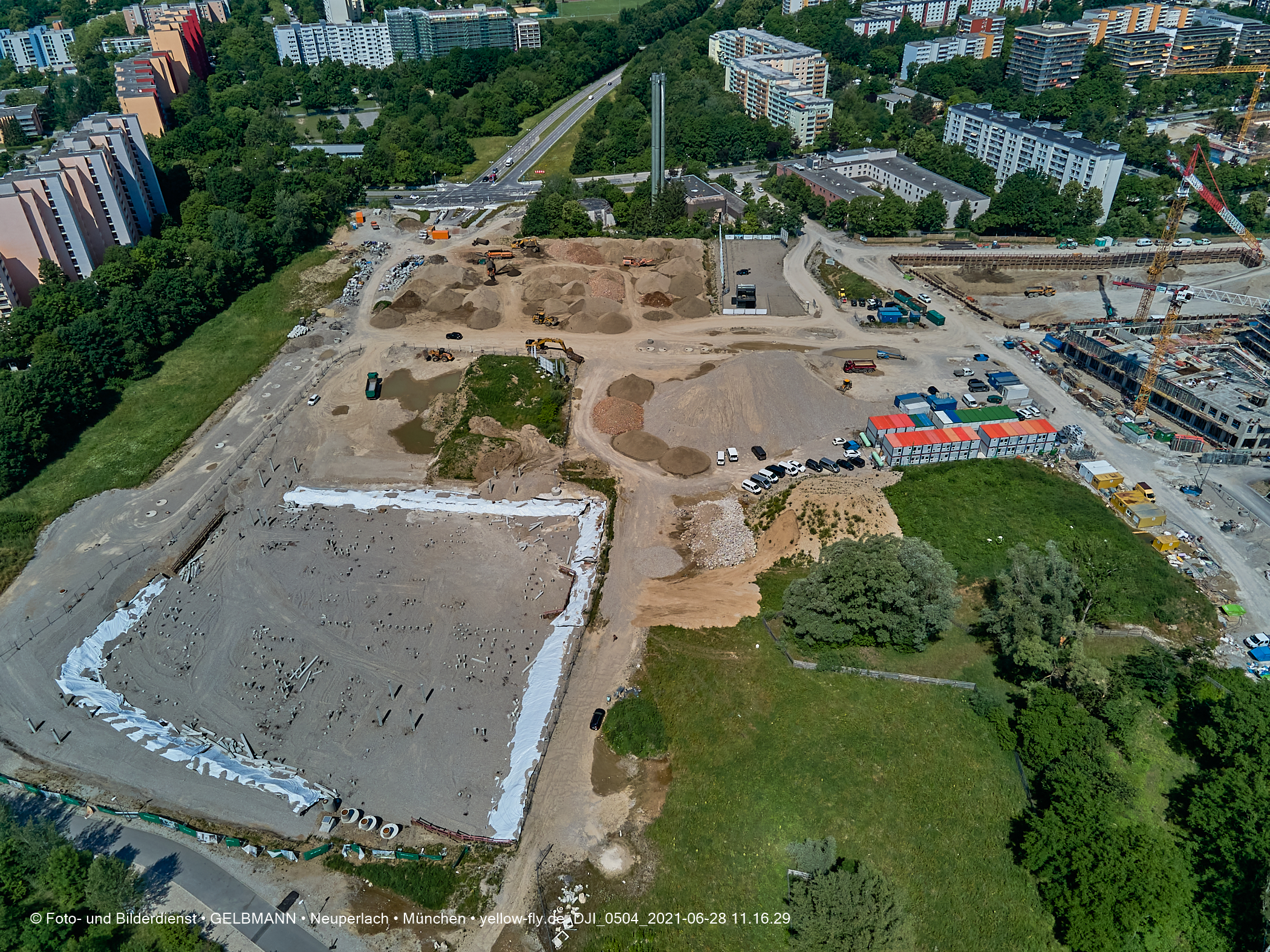 das laute Hämmern, mit dem die Pfähle für die Pfahlgründung indie Erde getrieben werden. Wie schon berichtet,